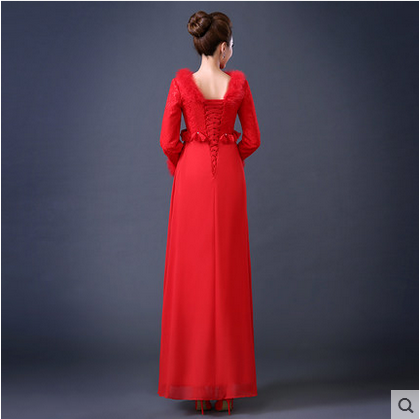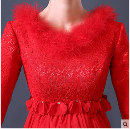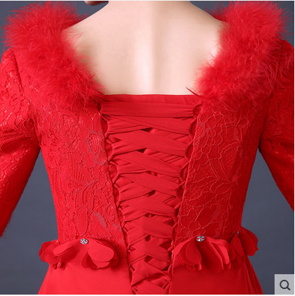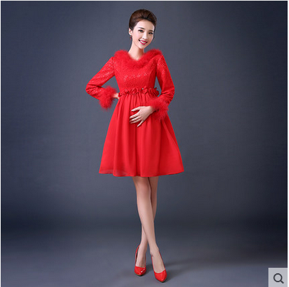 • 冬季新款敬酒服紅色長短款長袖加厚孕婦大碼高腰新娘禮服