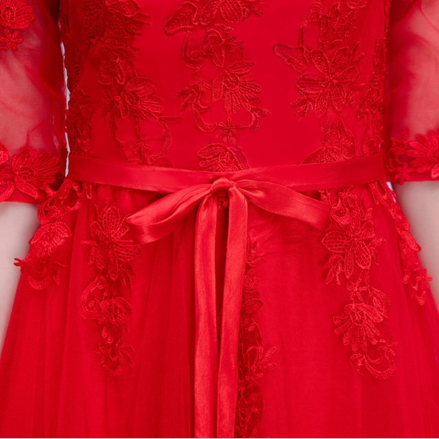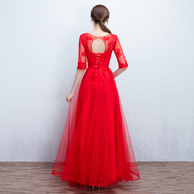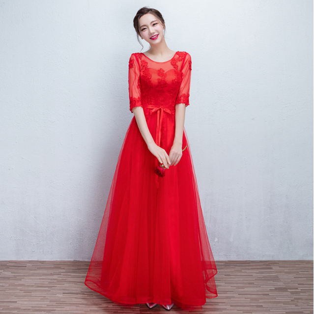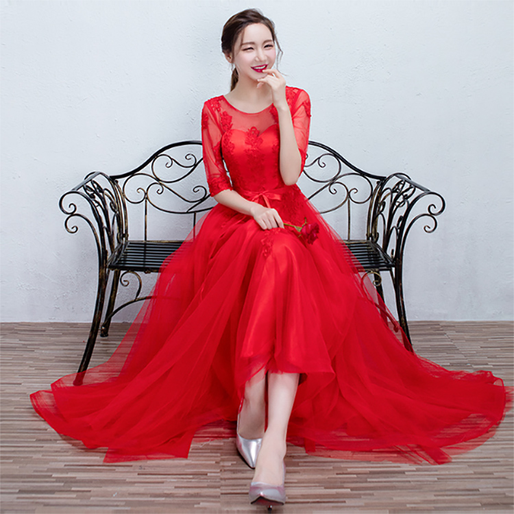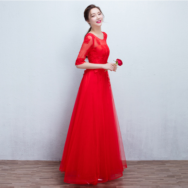 • 送項(xiàng)鏈耳環(huán)!2016新款韓式中袖修身新娘結(jié)婚宴會長款晚禮服