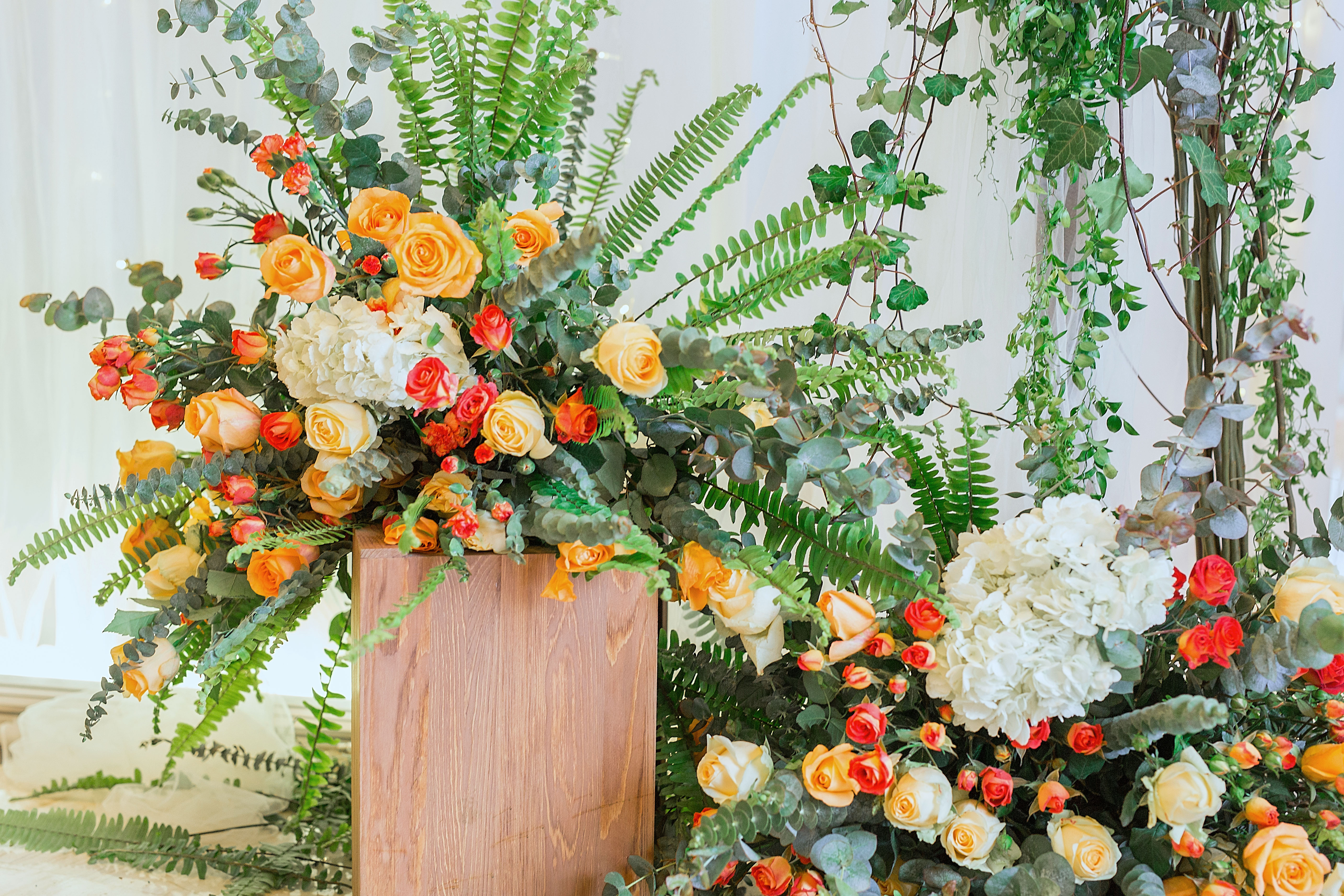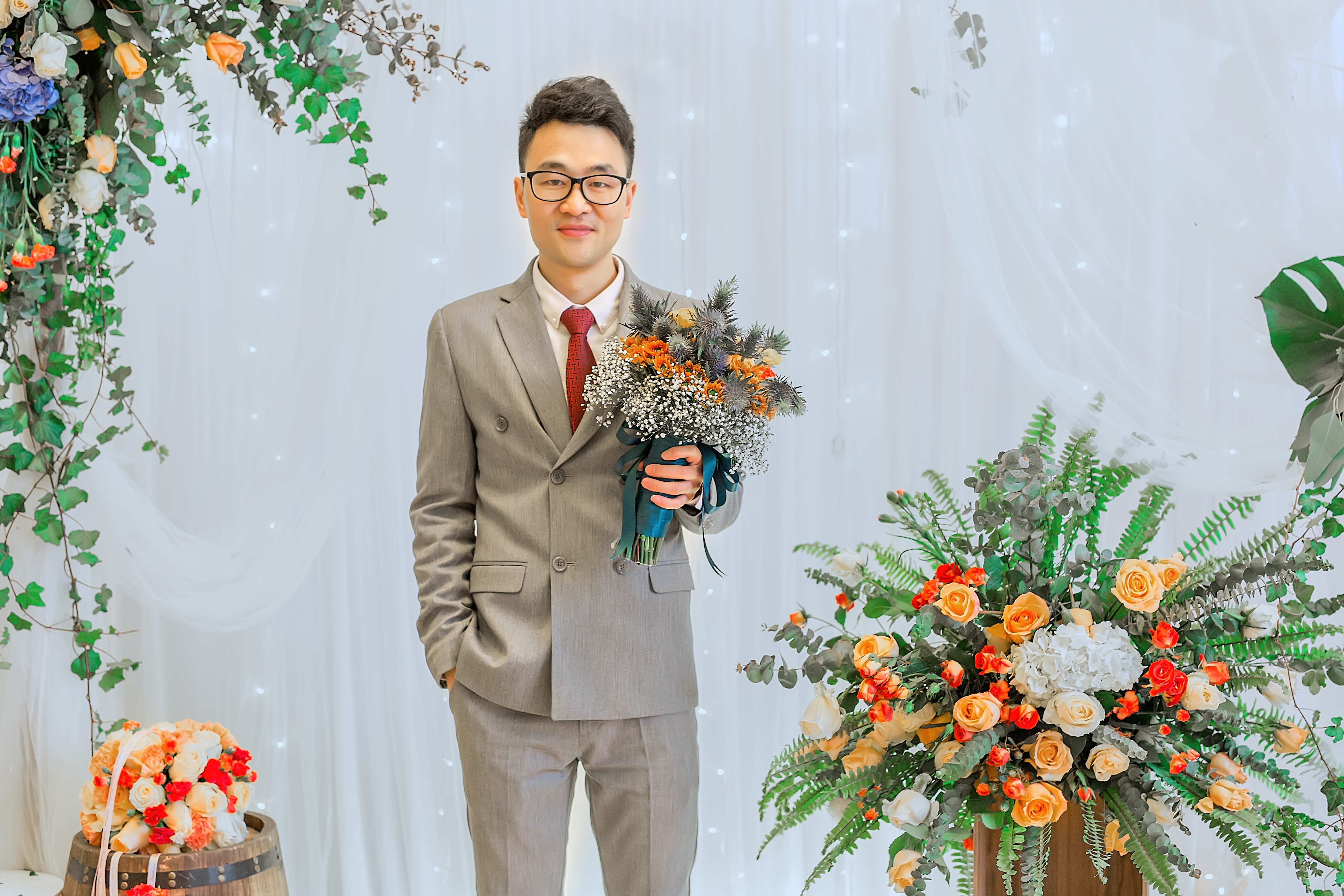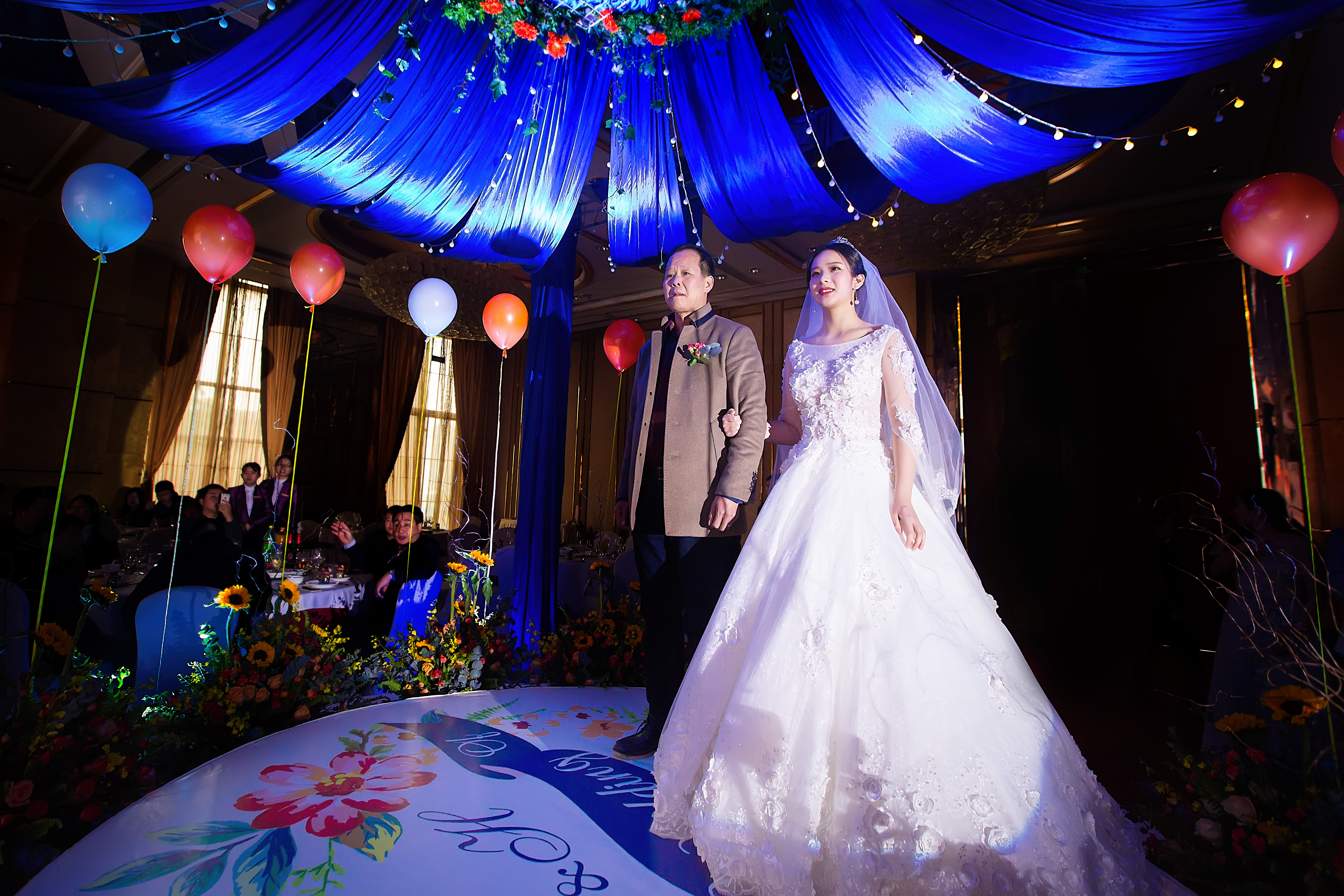 走心定制寶藍(lán)色+橘色婚禮,純鮮花布置