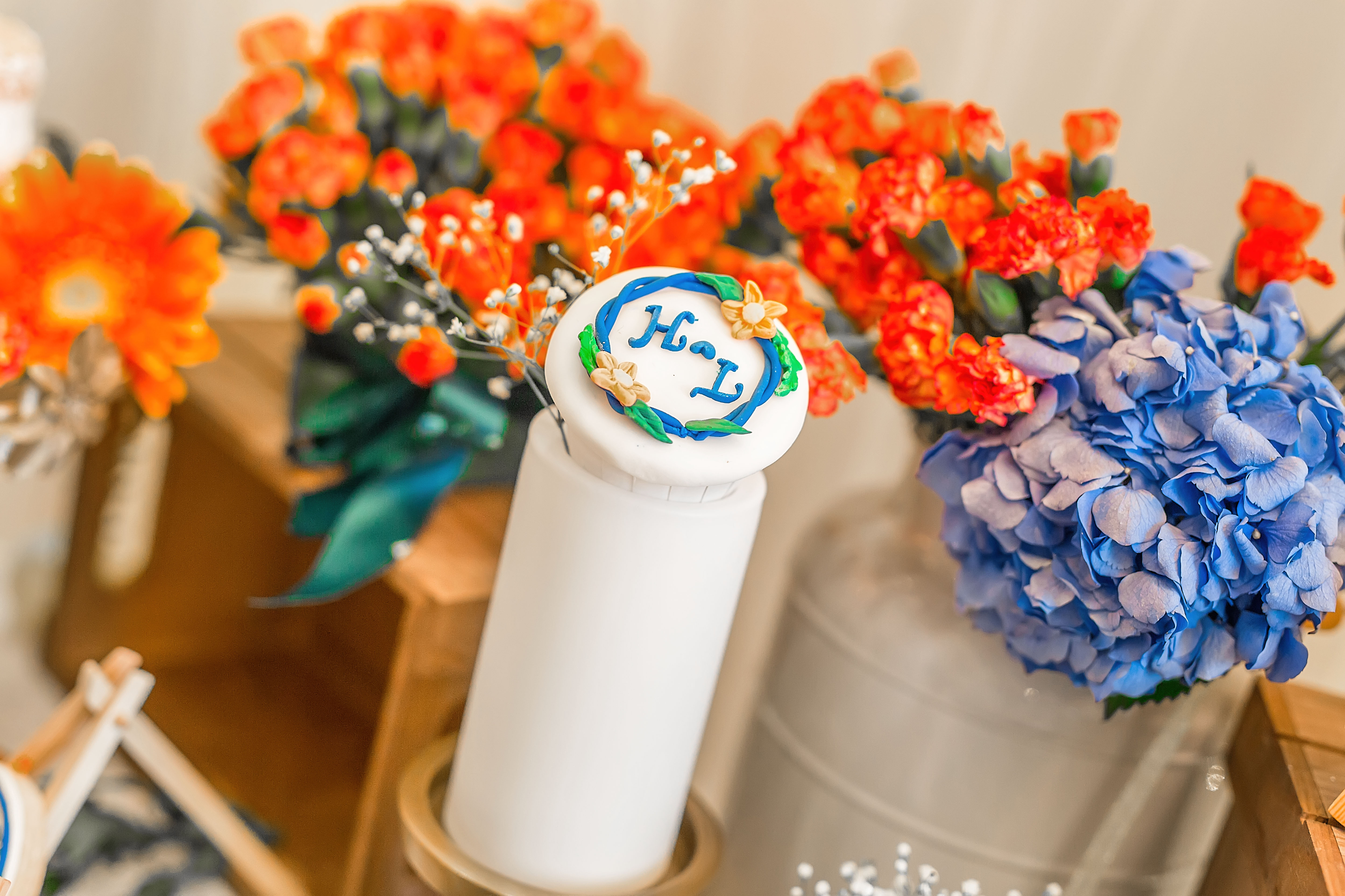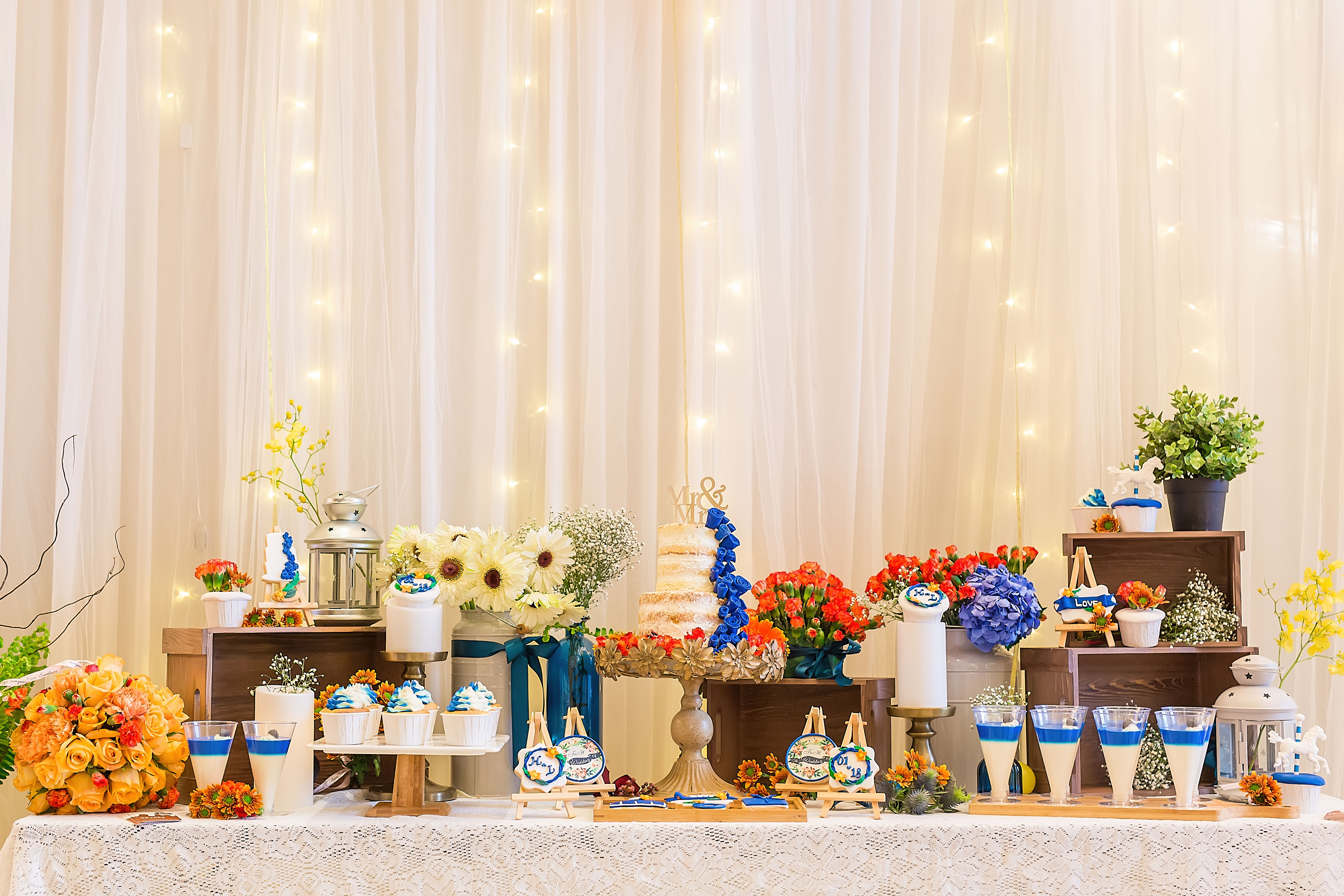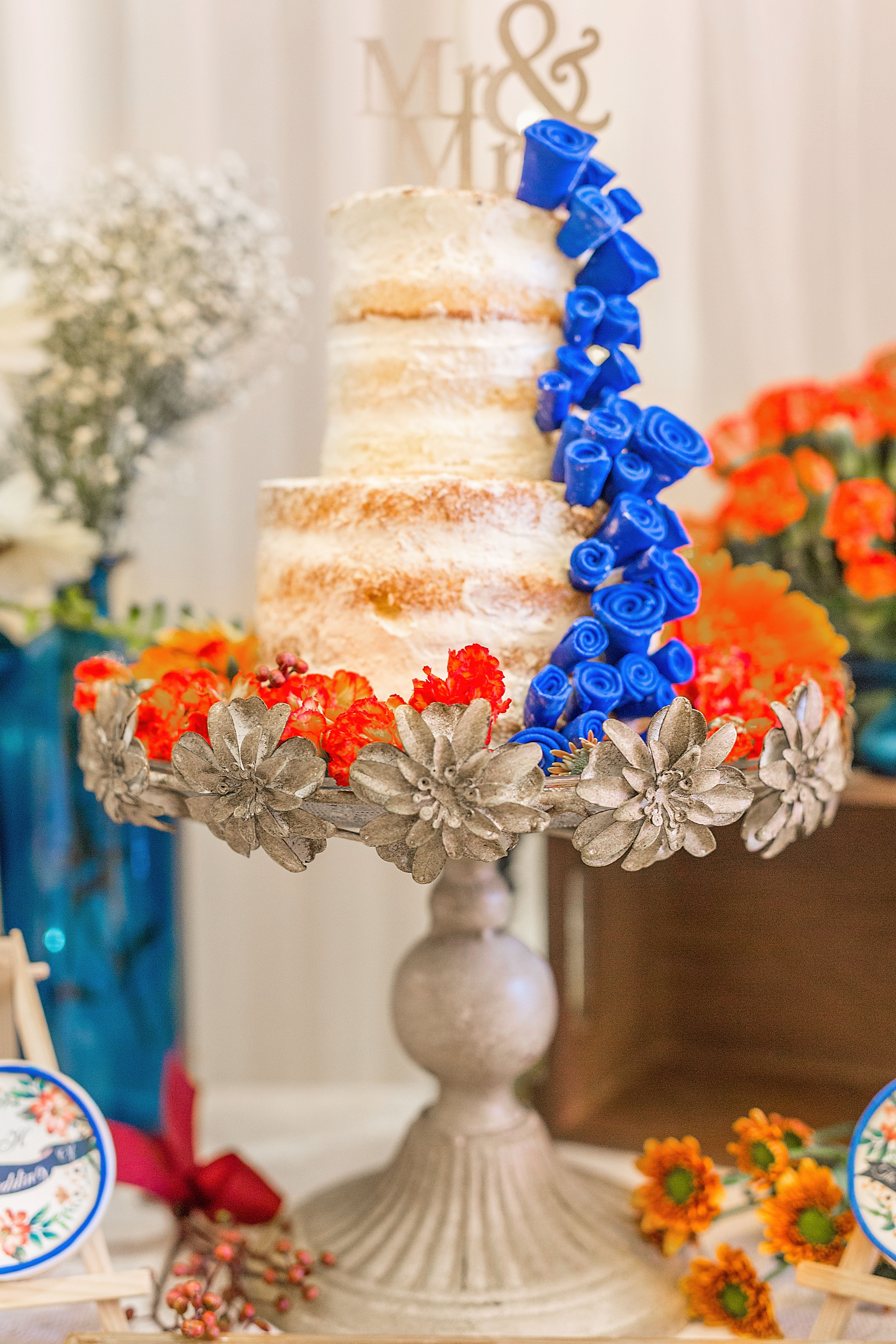 • 走心定制寶藍(lán)色+橘色婚禮,純鮮花布置