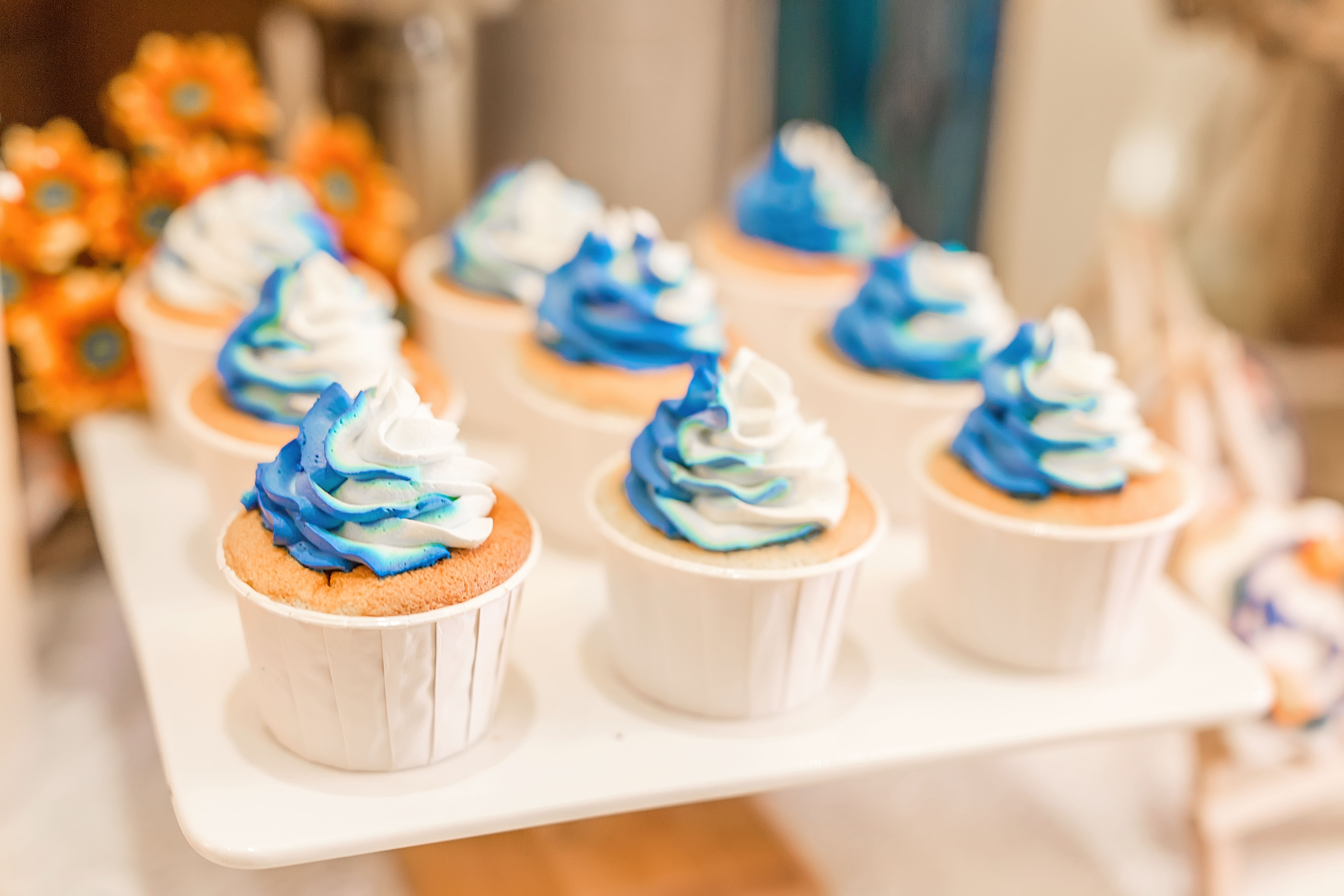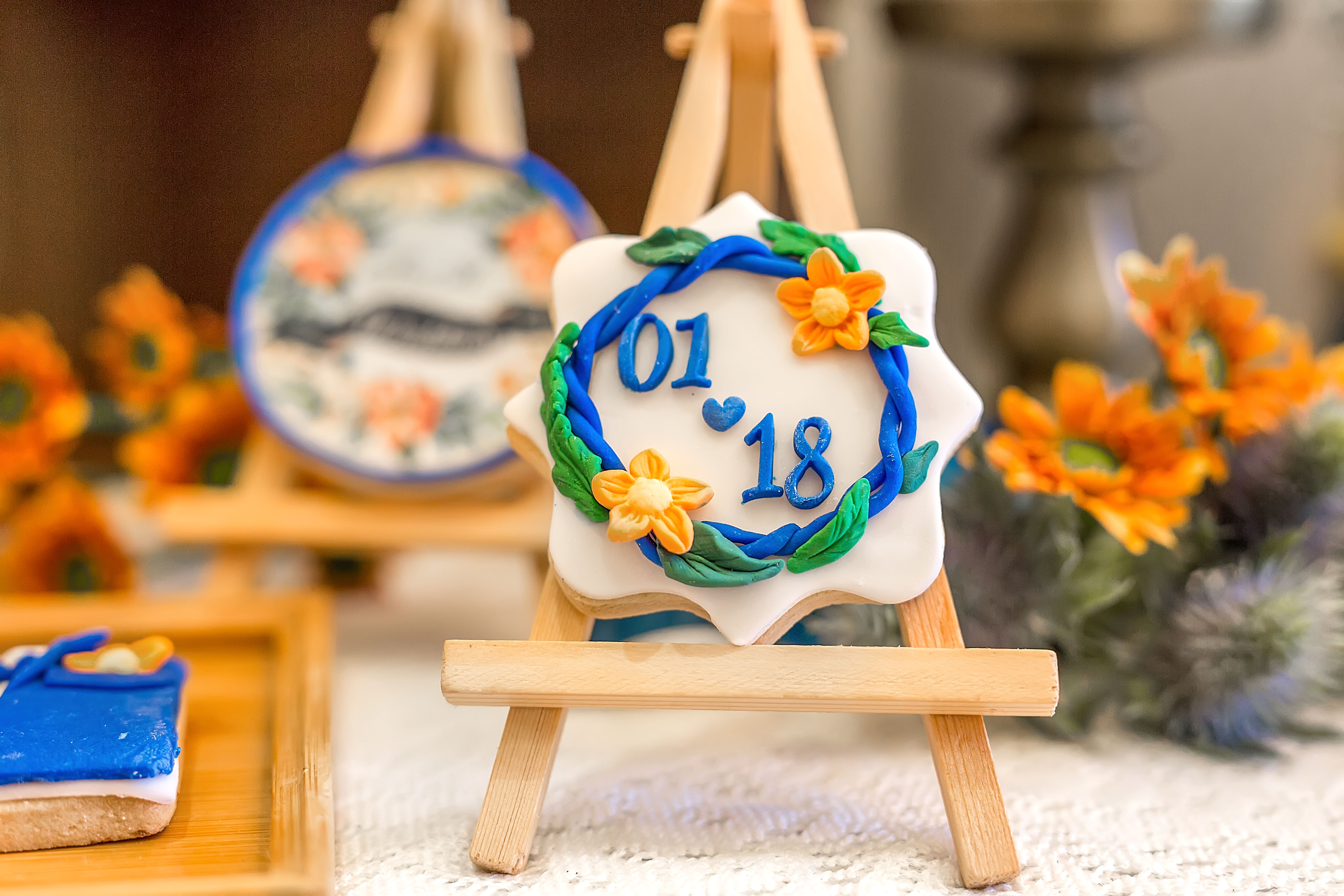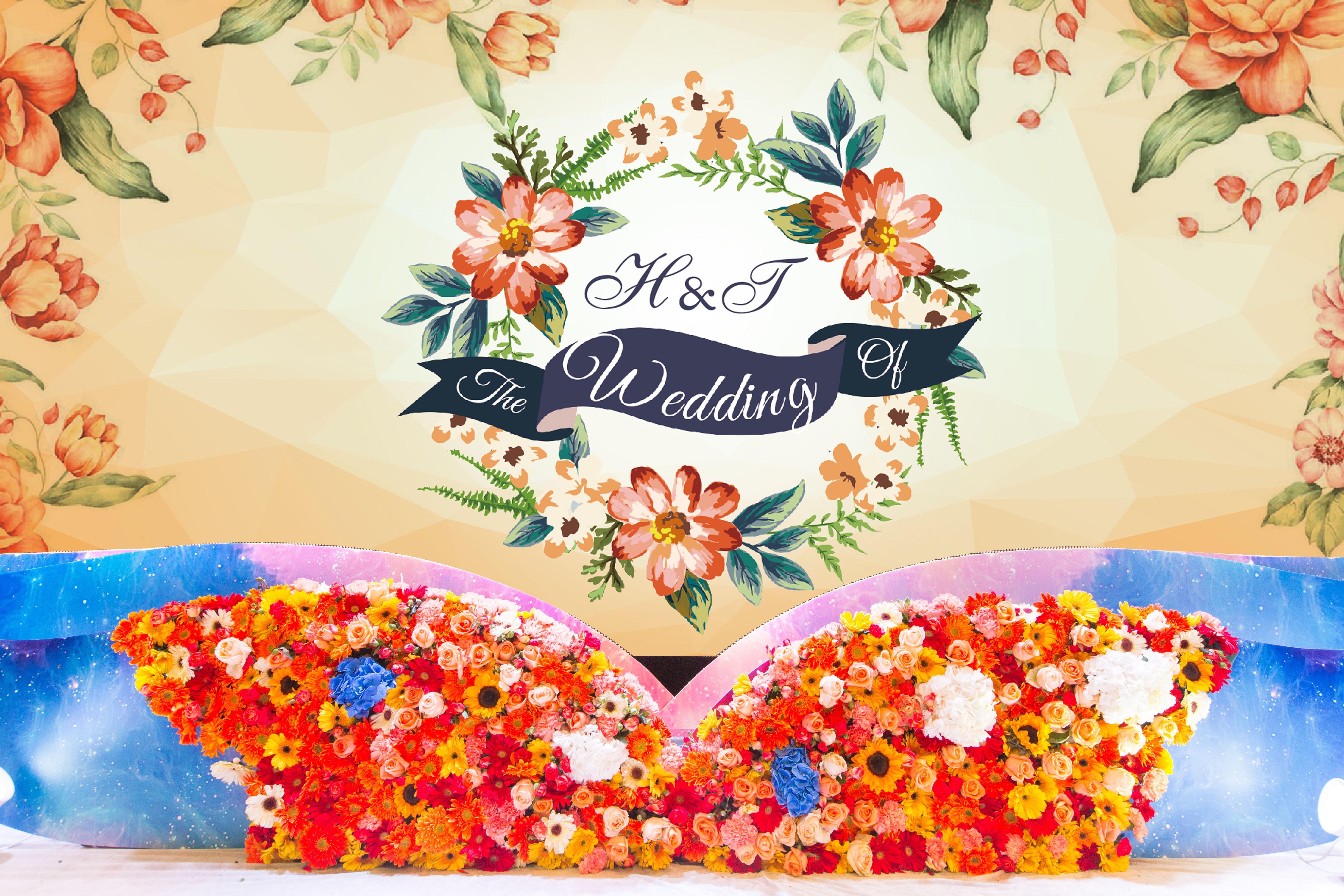 • 走心定制寶藍(lán)色+橘色婚禮,純鮮花布置