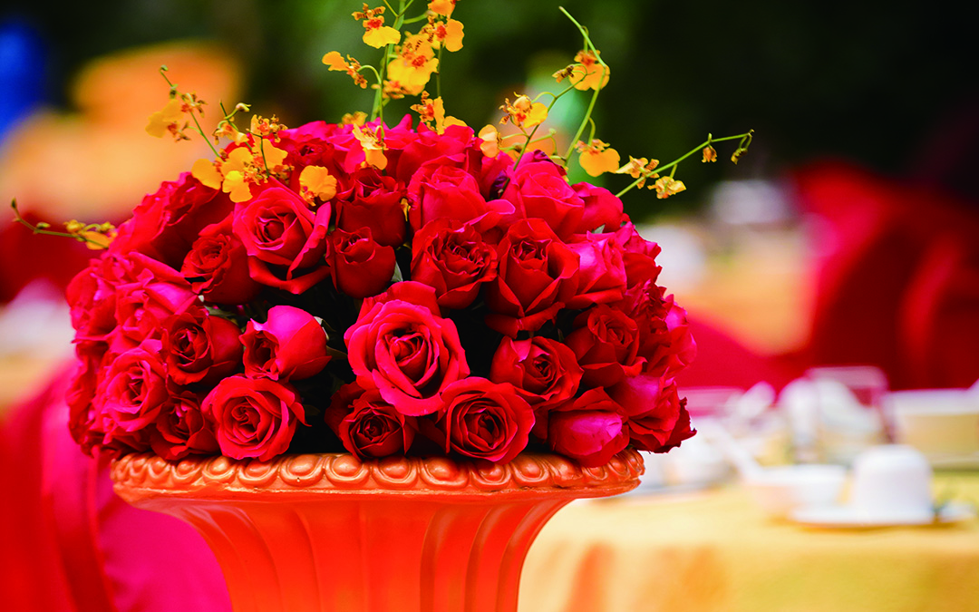 艾麗婚禮生態(tài)園酒店歐式紅金婚禮全場鮮花