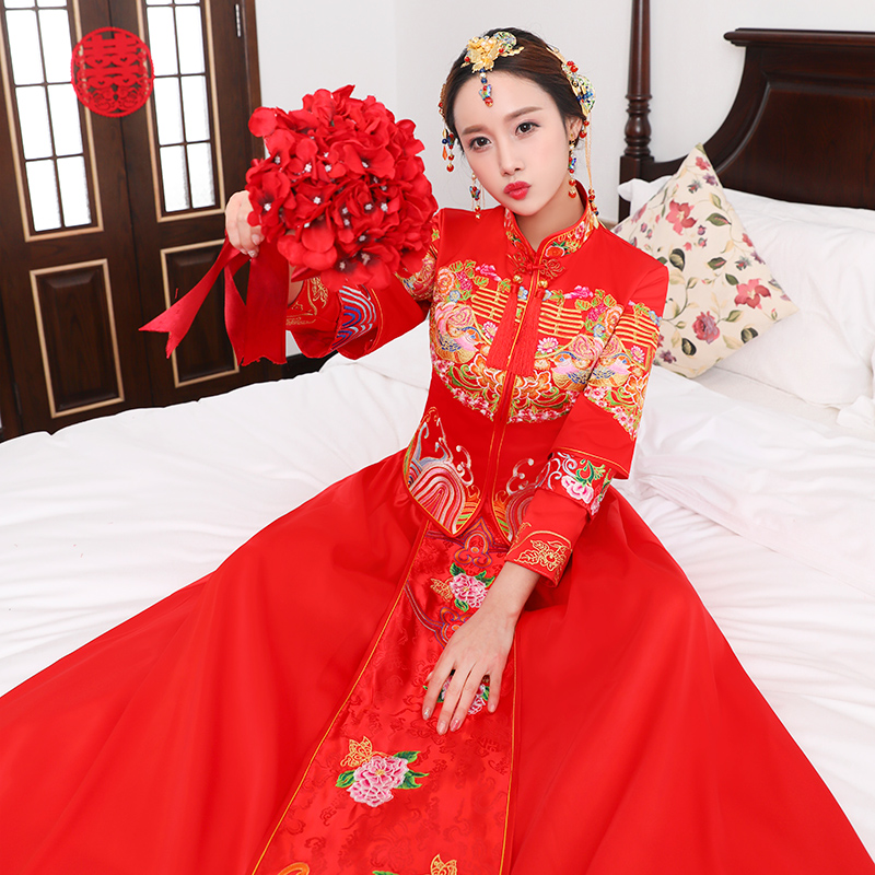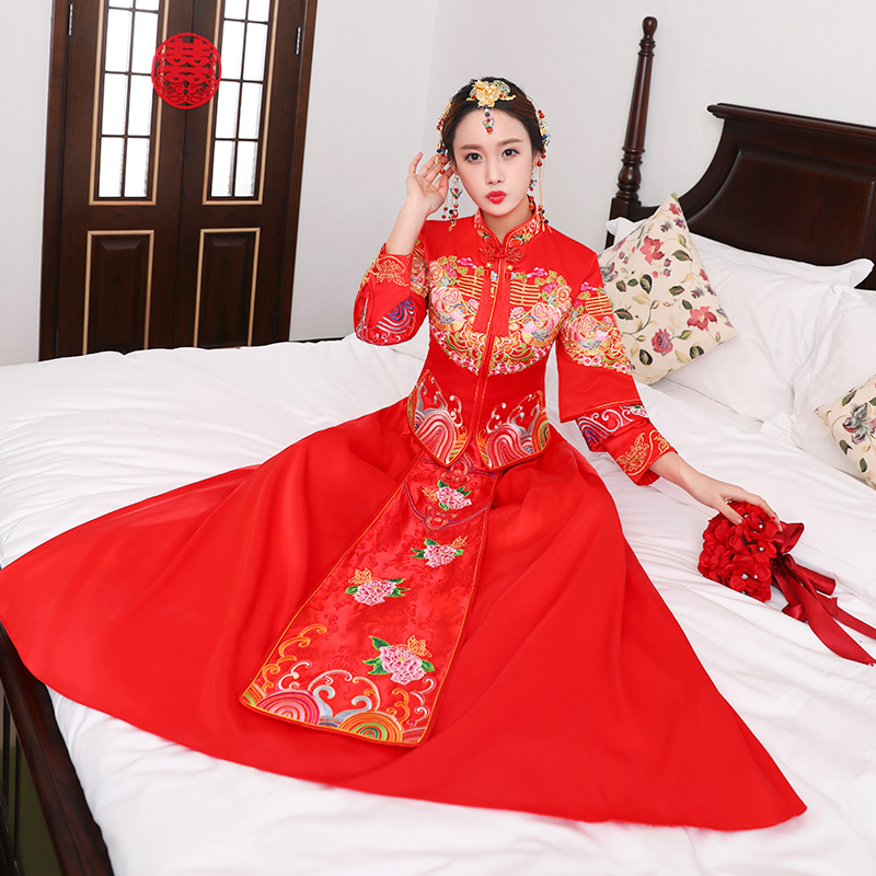 秀禾服新娘禮服嫁衣2017新款中式婚紗禮服結(jié)婚敬酒服旗袍復古