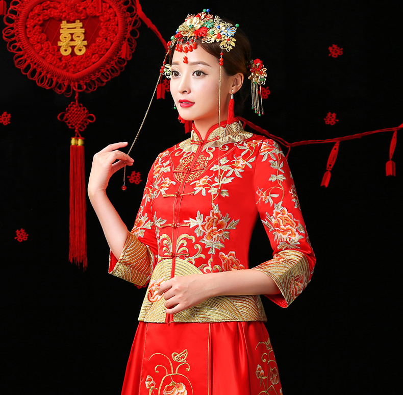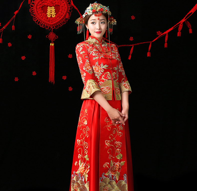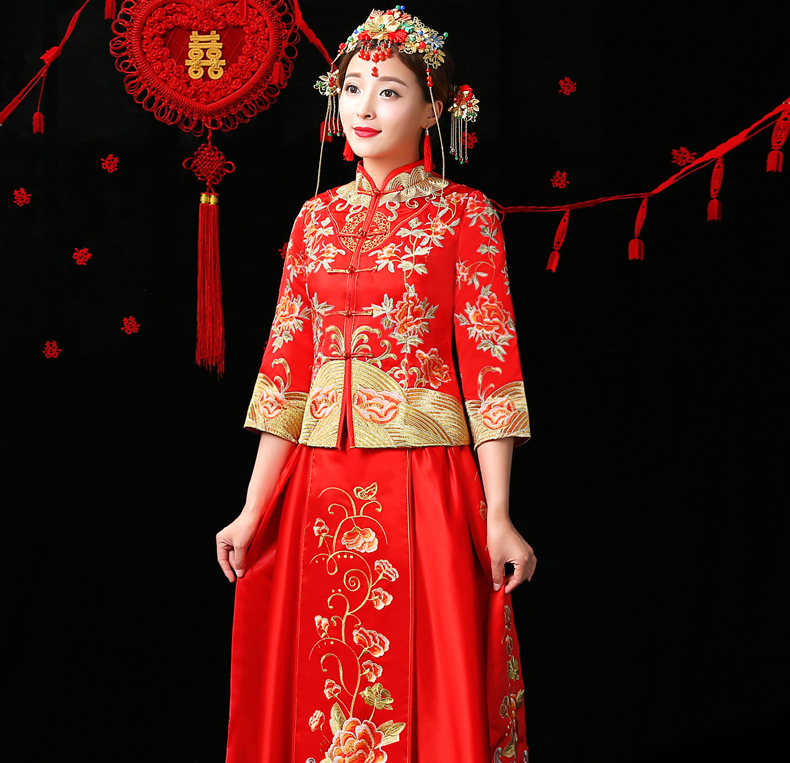 • 新款龍鳳褂刺繡中式敬酒服修身新娘秀禾服結(jié)婚旗袍敬酒服158