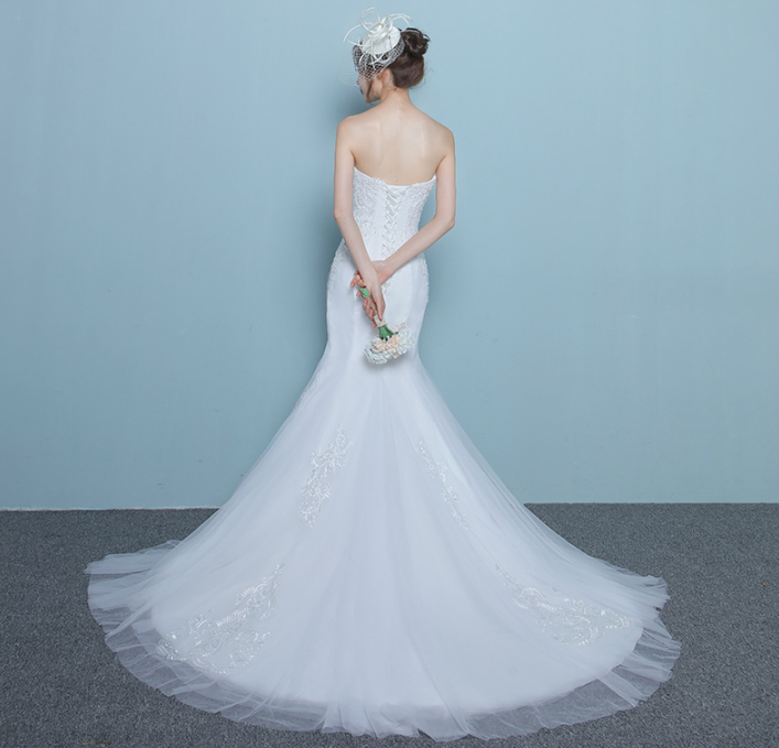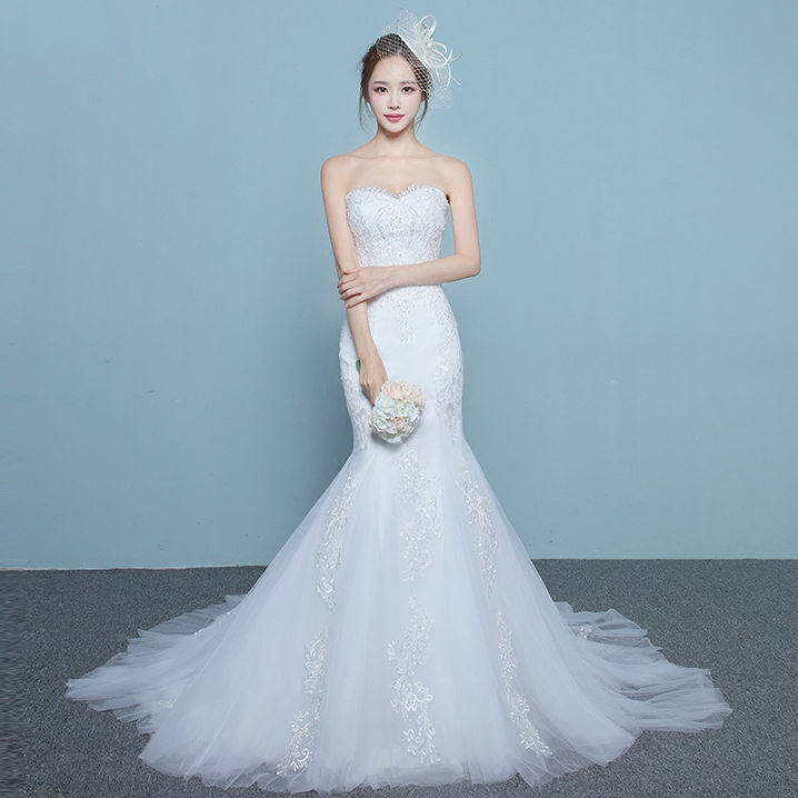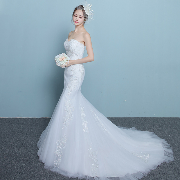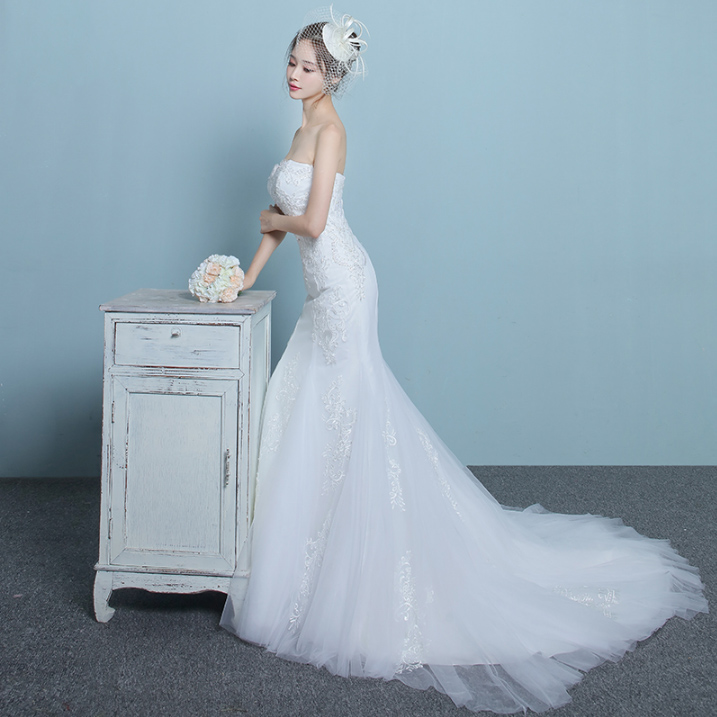 新品!2017春季新款韓式魚尾拖尾新娘結(jié)婚抹胸修身顯瘦婚紗