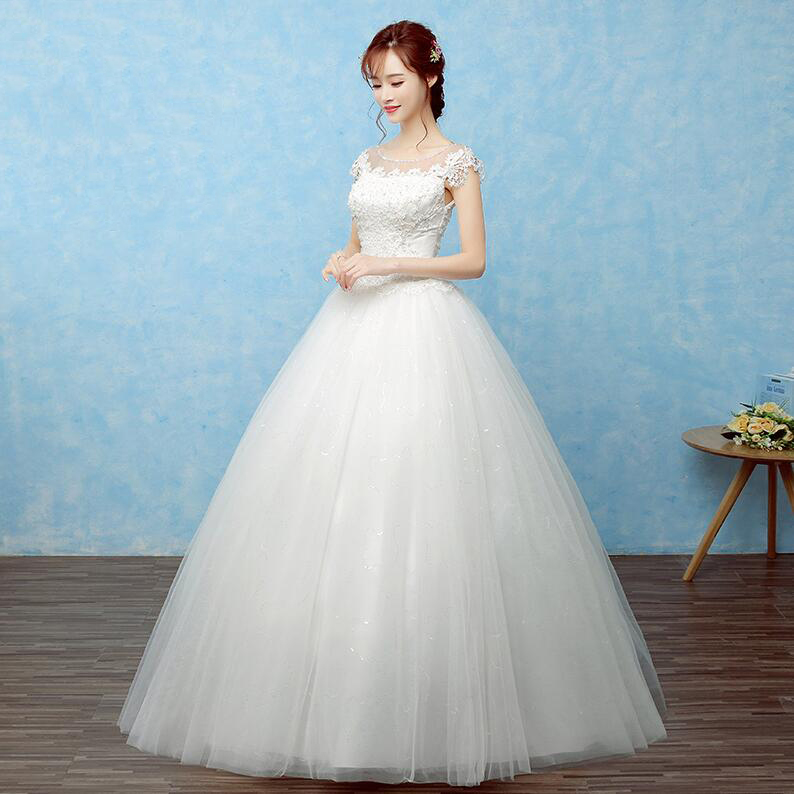 一字肩婚紗禮服新娘2017春季新款韓式齊地婚紗公主修身顯瘦
