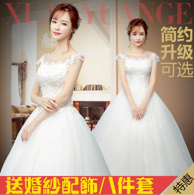 • 一字肩婚紗禮服新娘2017春季新款韓式齊地婚紗公主修身顯瘦