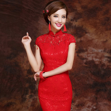 • 敬酒服新娘春季新款結(jié)婚旗袍中式嫁衣 修身連衣裙訂婚宴會晚禮服