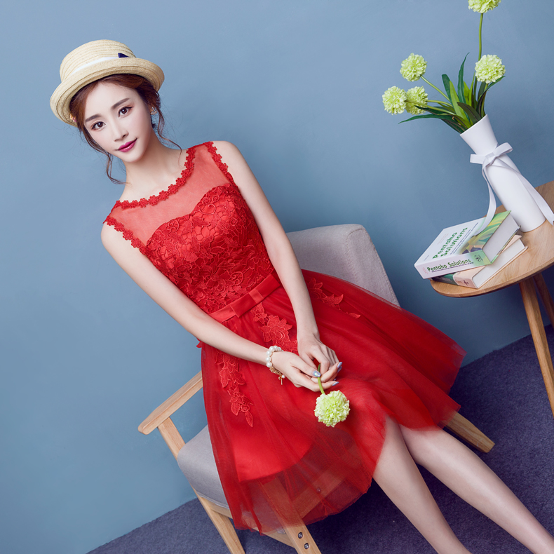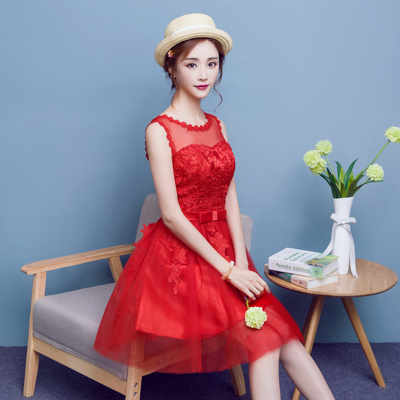 • 2017春新款氣質(zhì)淑女宴會小禮服蕾絲修身顯瘦短款連衣裙紅色敬