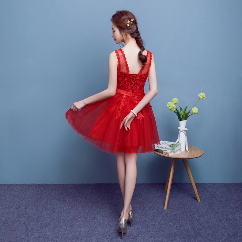 2017春新款氣質(zhì)淑女宴會小禮服蕾絲修身顯瘦短款連衣裙紅色敬