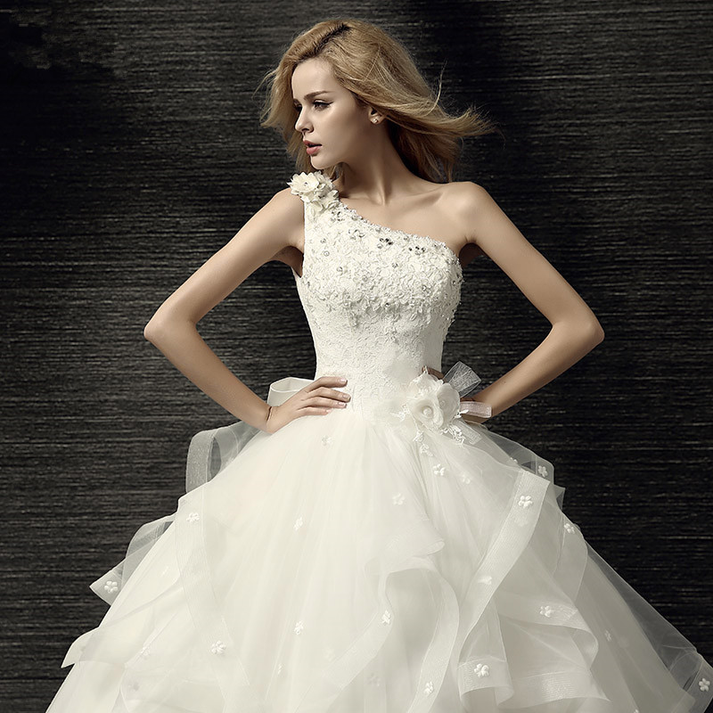 • 婚紗禮服新款春季簡約大碼孕婦新娘韓式單肩齊地顯瘦婚紗韓版