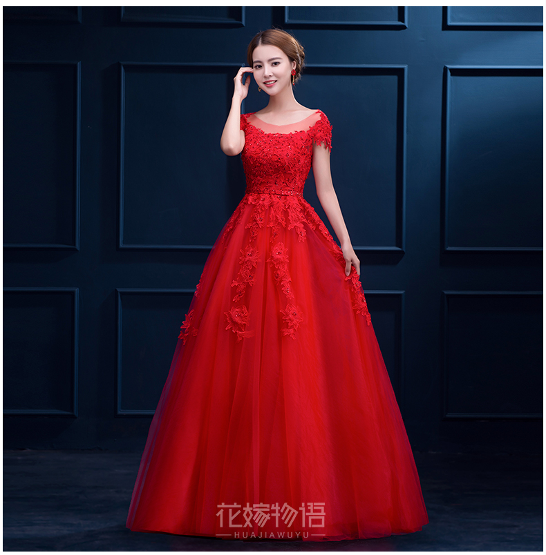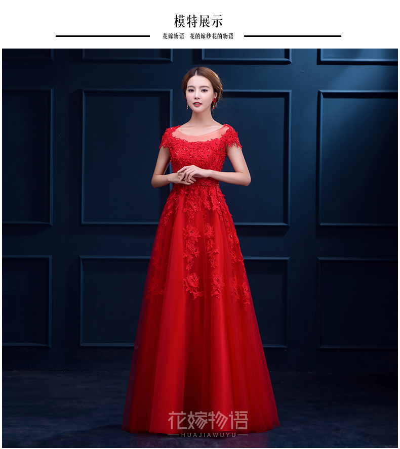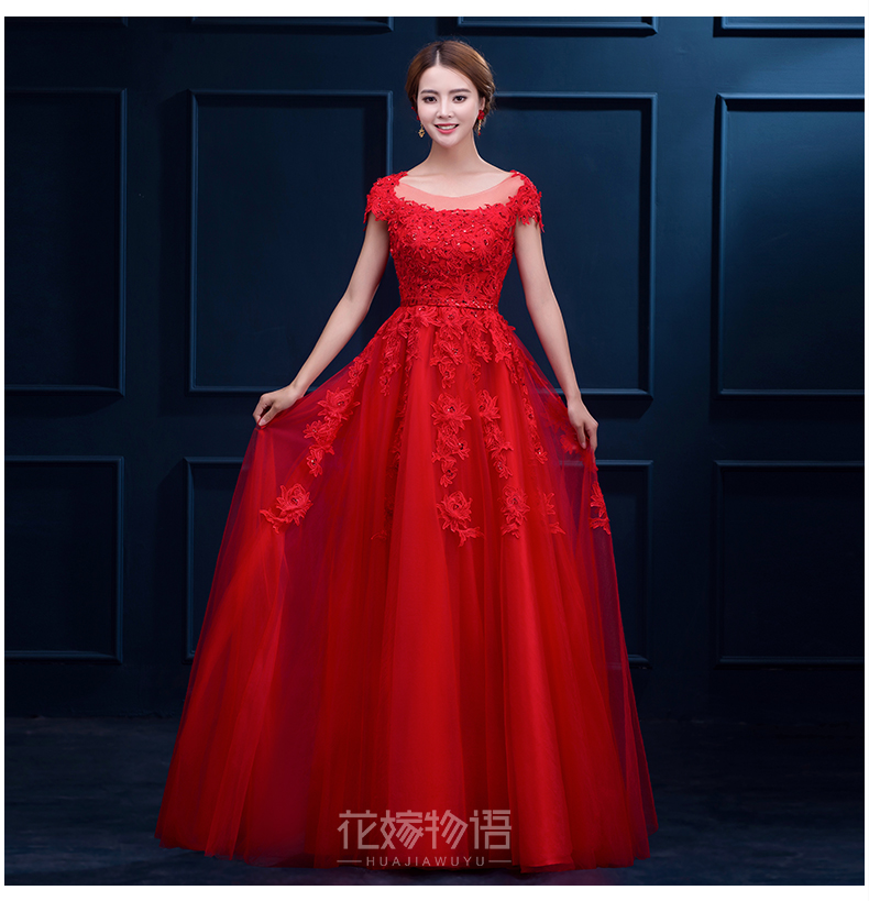 新娘敬酒服2017新款春季結(jié)婚禮服女士長款韓式高腰紅色晚禮服