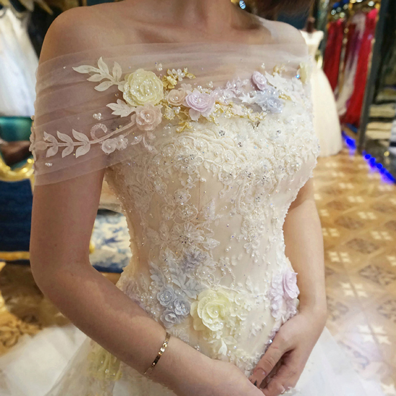 送6件套!婚紗禮服2017新款一字肩簡約新娘結(jié)婚韓式1米拖尾