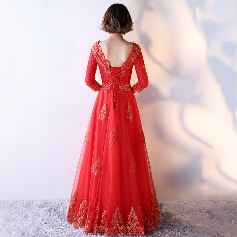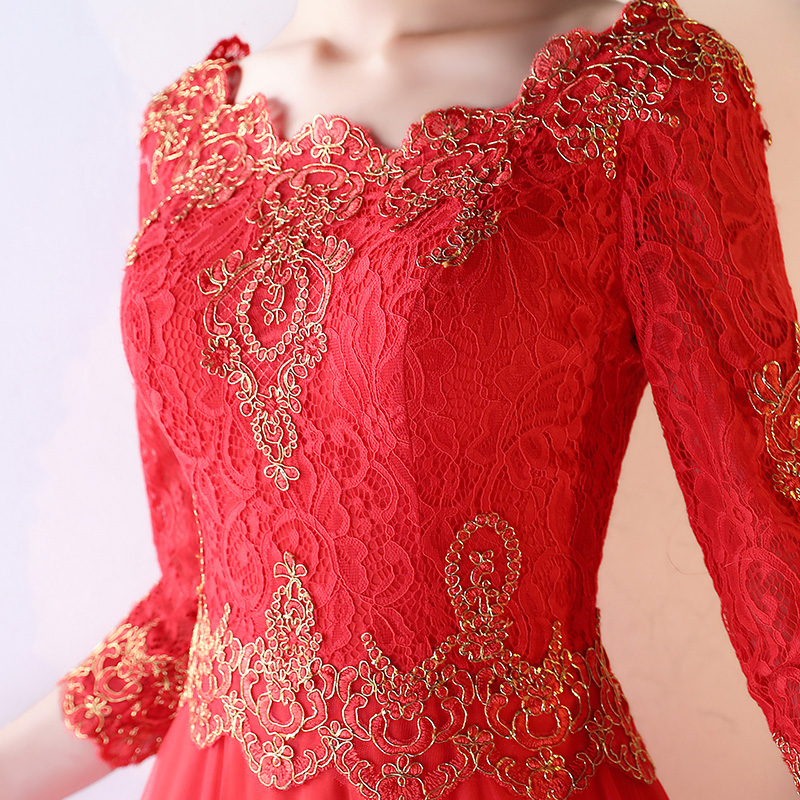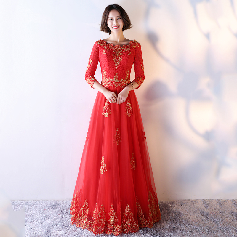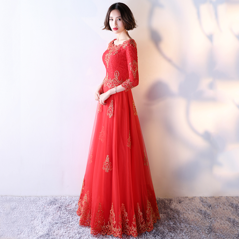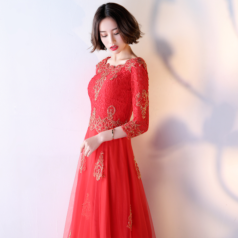 • 敬酒服新娘春夏季2017新款紅色顯瘦長款修身晚禮服LF680