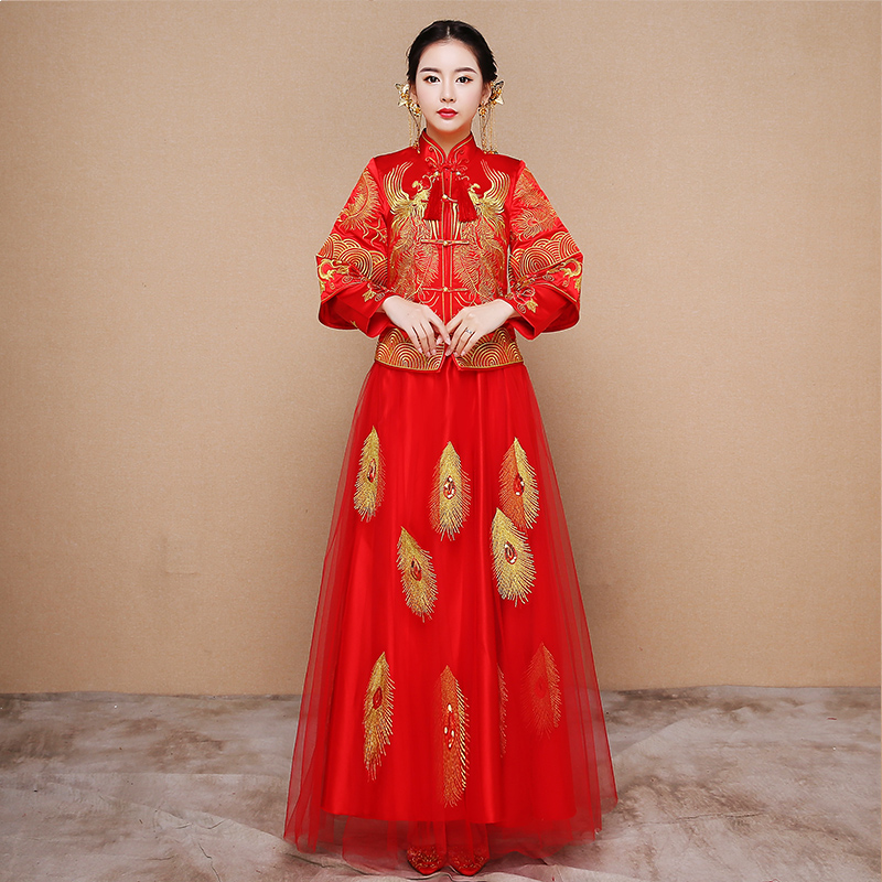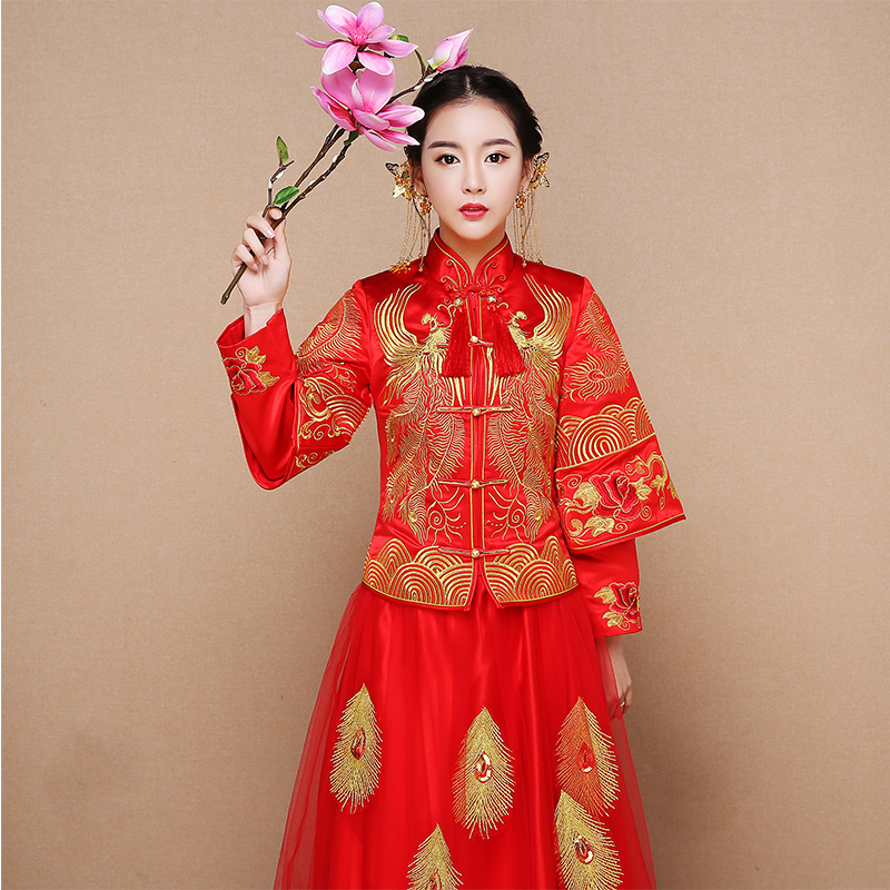 • 2017秀禾服新娘敬酒服中式禮服嫁衣大碼孕婦婚紗古裝龍鳳褂秀
