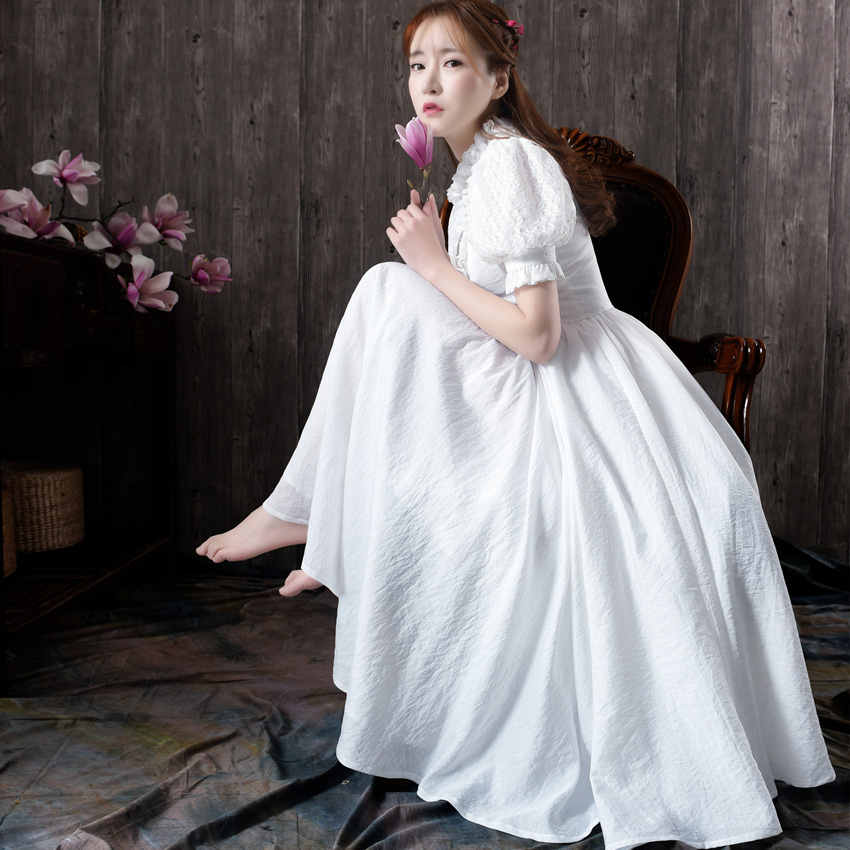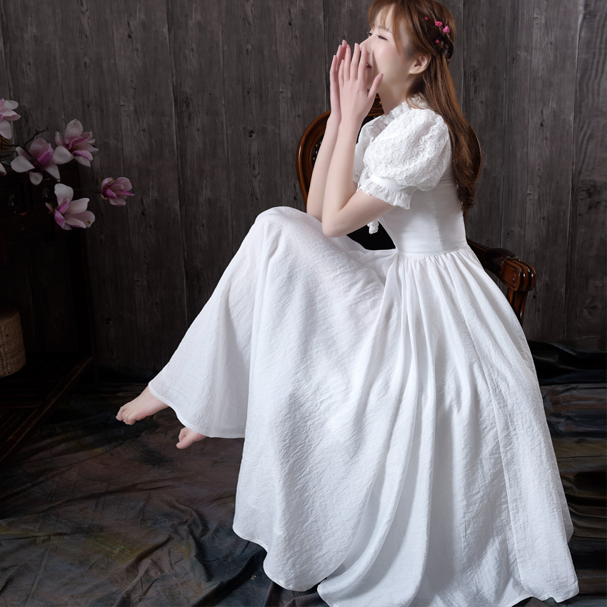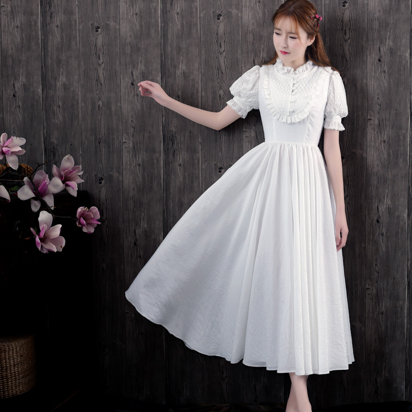 • 五千錦繡歐式復古長裙淑女公主袖木耳蕾絲超大擺連衣裙2017夏