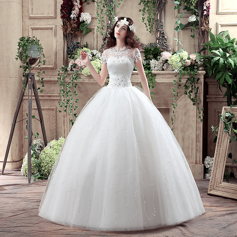新娘婚紗禮服2017新款抹胸顯瘦綁帶齊地婚紗大碼雙肩婚紗1