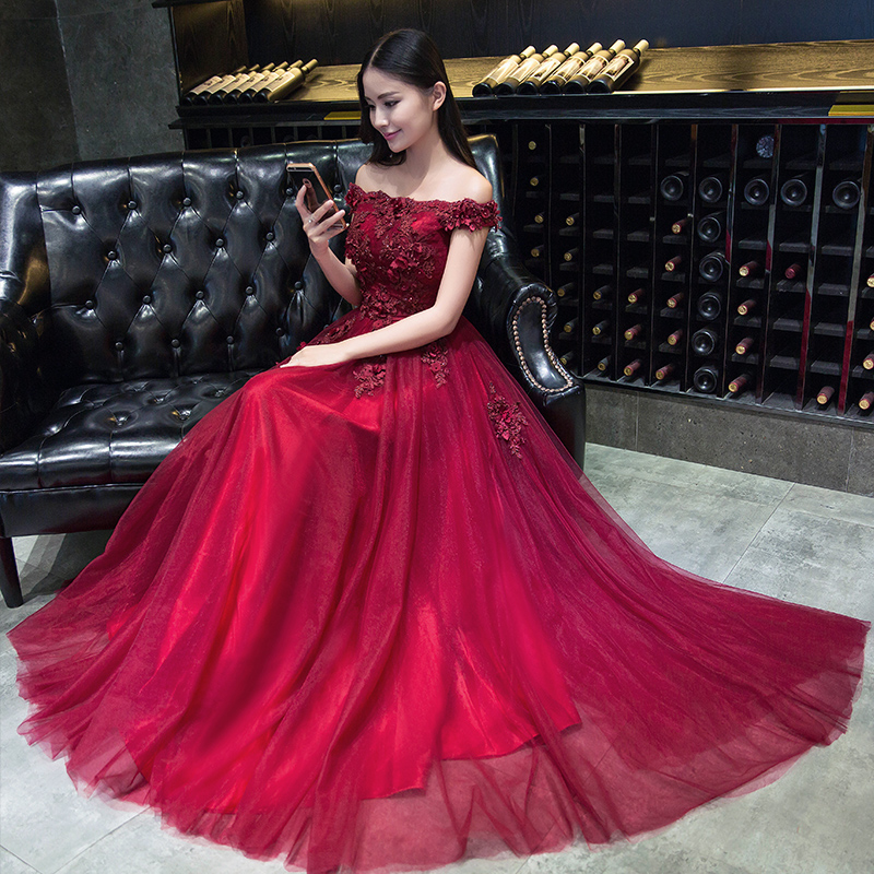 新娘敬酒服2017新款宴會(huì)春季修身一字肩晚禮服長(zhǎng)款女顯瘦結(jié)婚