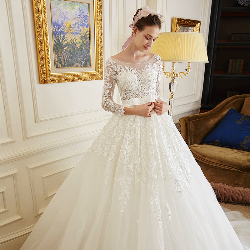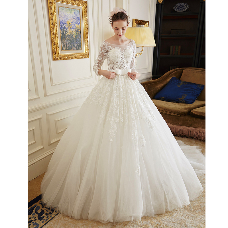 艾慕婚紗禮服 新款2017夏天款 凌晴抹胸蕾絲蓬蓬裙長(zhǎng)拖尾