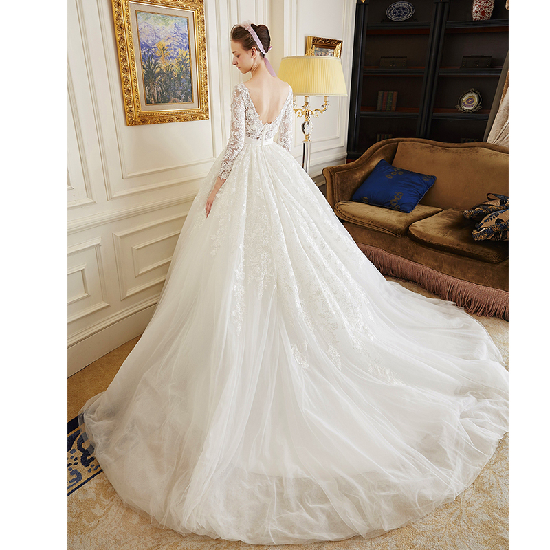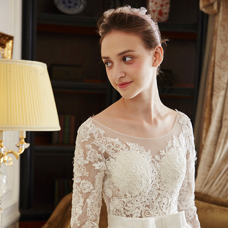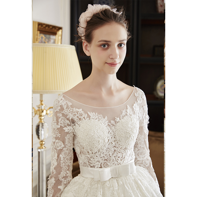 • 艾慕婚紗禮服 新款2017夏天款 凌晴抹胸蕾絲蓬蓬裙長(zhǎng)拖尾