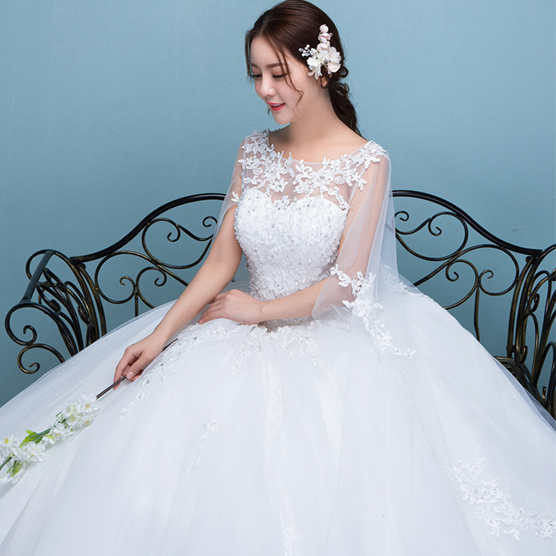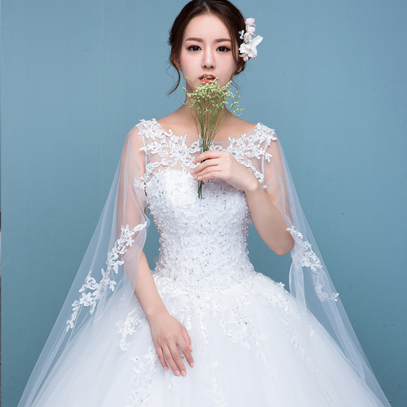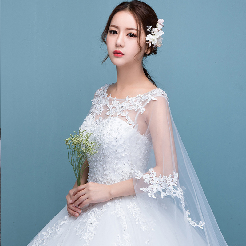 • 2017夏季新款釘珠蕾絲一字肩顯瘦婚紗禮服婚紗大拖尾201