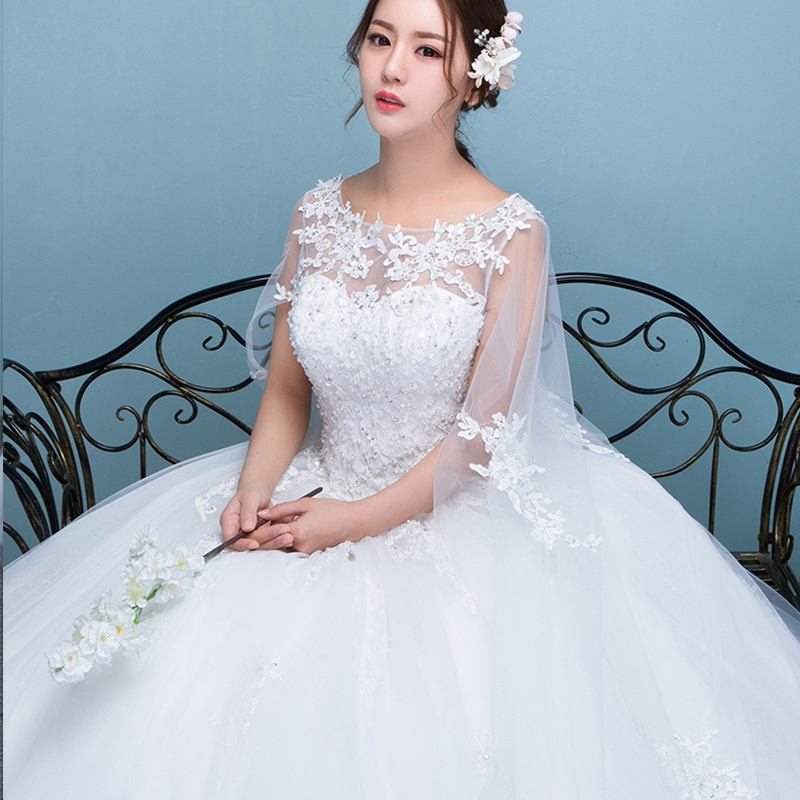 2017夏季新款釘珠蕾絲一字肩顯瘦婚紗禮服婚紗大拖尾201