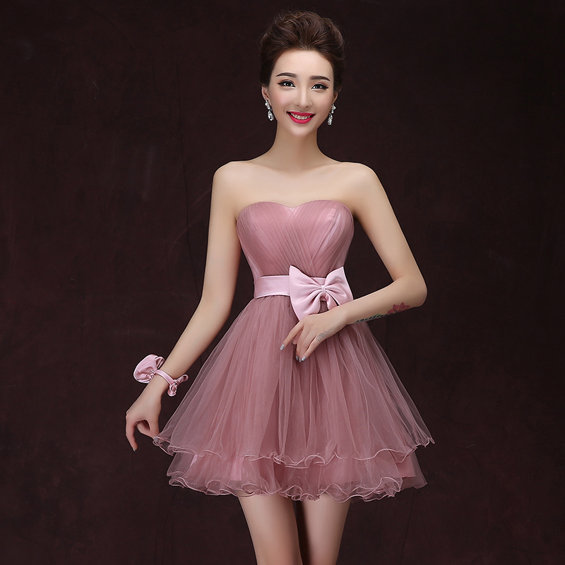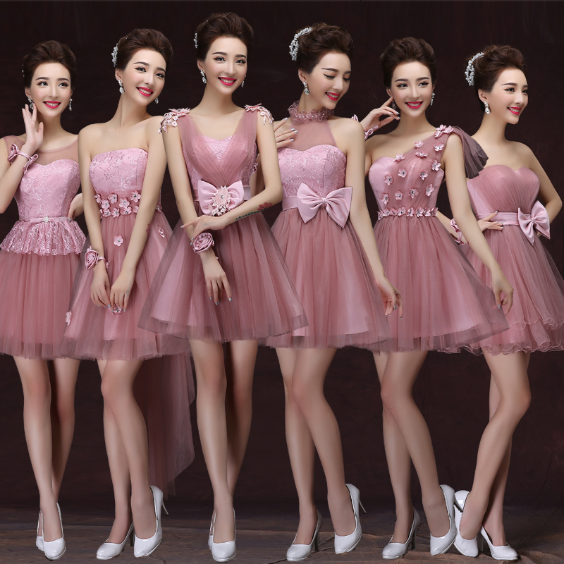 • 伴娘服短款新娘敬酒服小禮服姐妹裙修身宴會(huì)晚禮服女短款