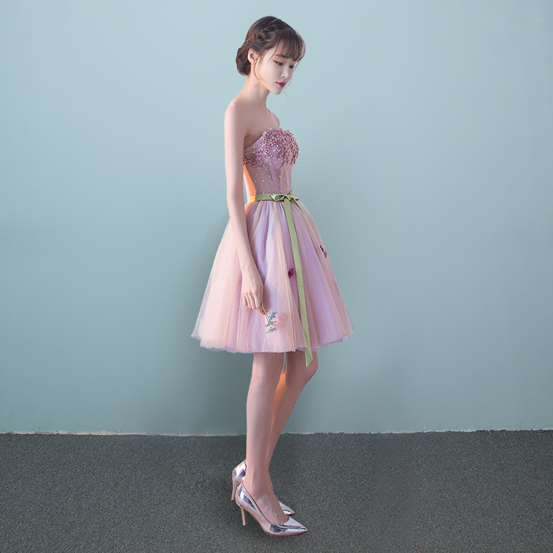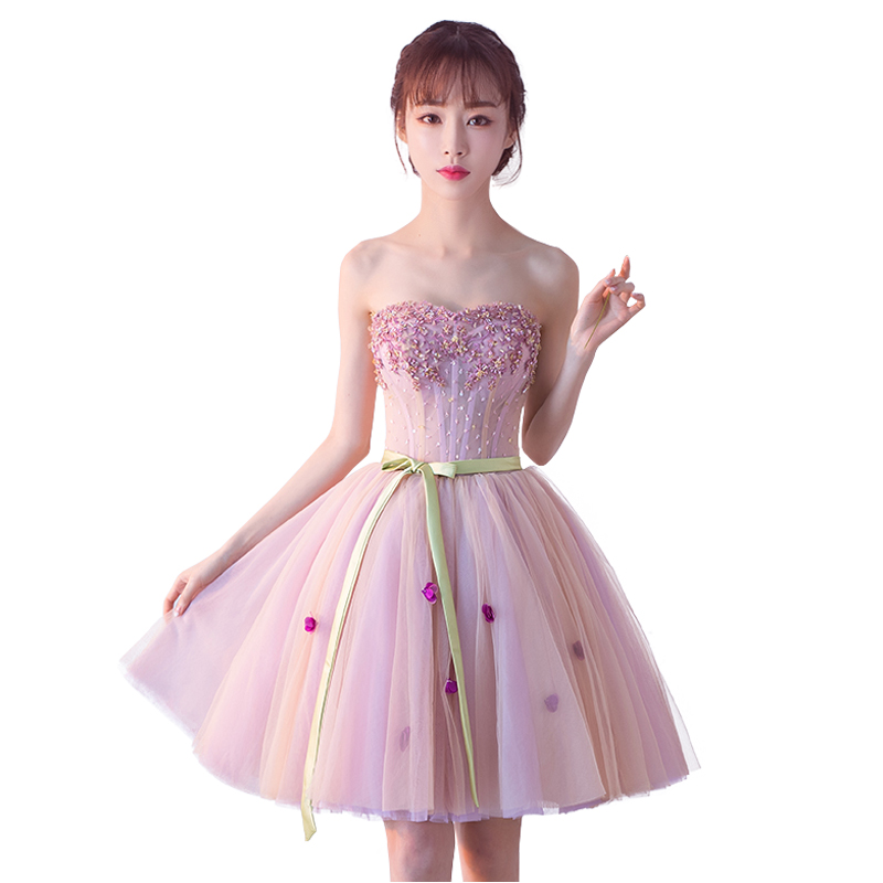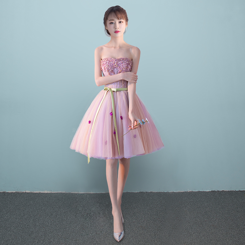 彩紗新款演出服短款宴會(huì)主持伴娘晚禮服女影樓主題蓬蓬裙