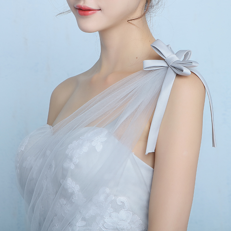• 姐妹團(tuán)伴娘服短款韓式單肩修身宴會(huì)小晚禮服甜美公主