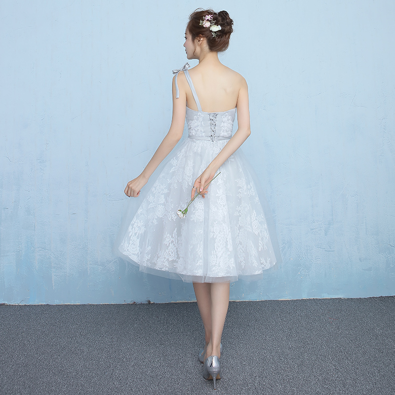 姐妹團(tuán)伴娘服短款韓式單肩修身宴會(huì)小晚禮服甜美公主