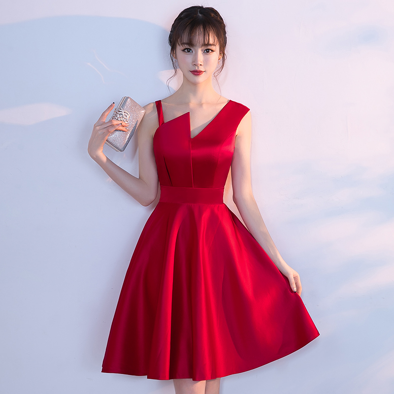 宴會晚禮服2017新款訂婚聚會派對短款大紅色新娘敬酒服連衣裙