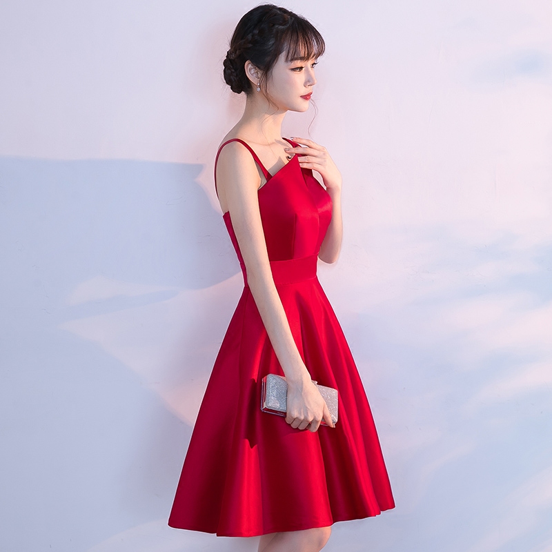 • 宴會晚禮服2017新款訂婚聚會派對短款大紅色新娘敬酒服連衣裙