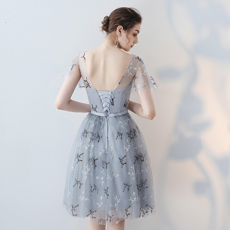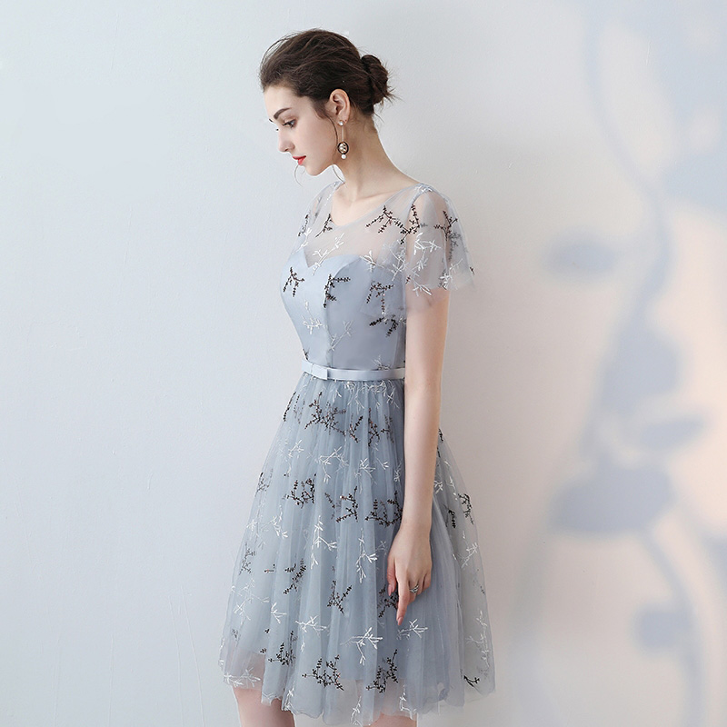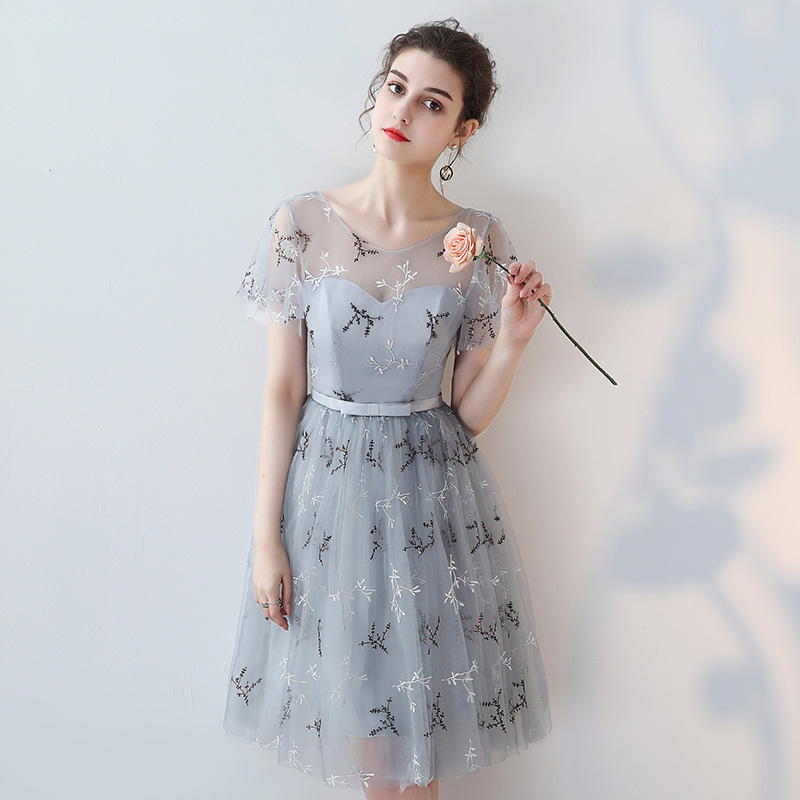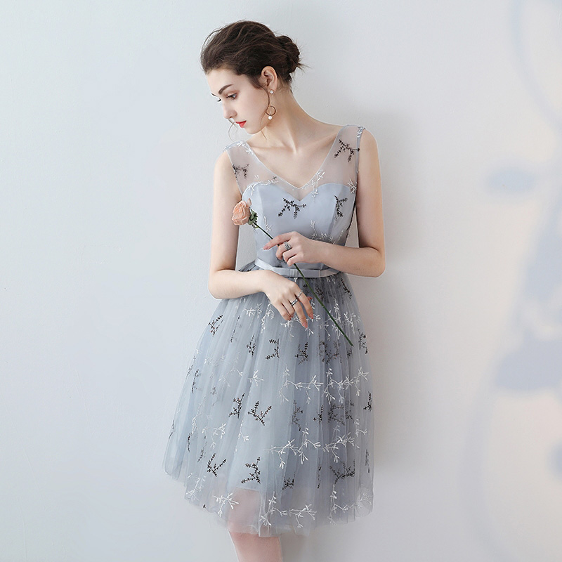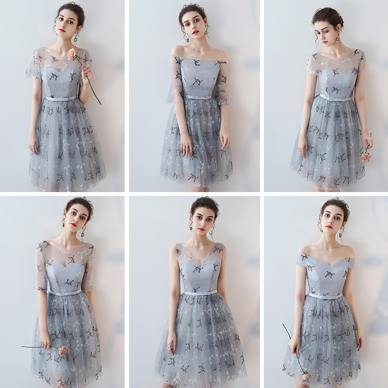 2017夏季新款伴娘服灰色連衣裙時尚修身伴娘禮服宴會小禮服女
