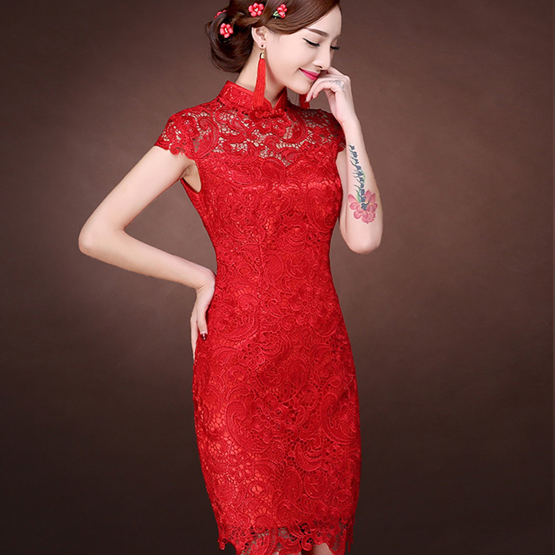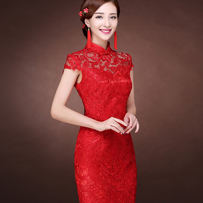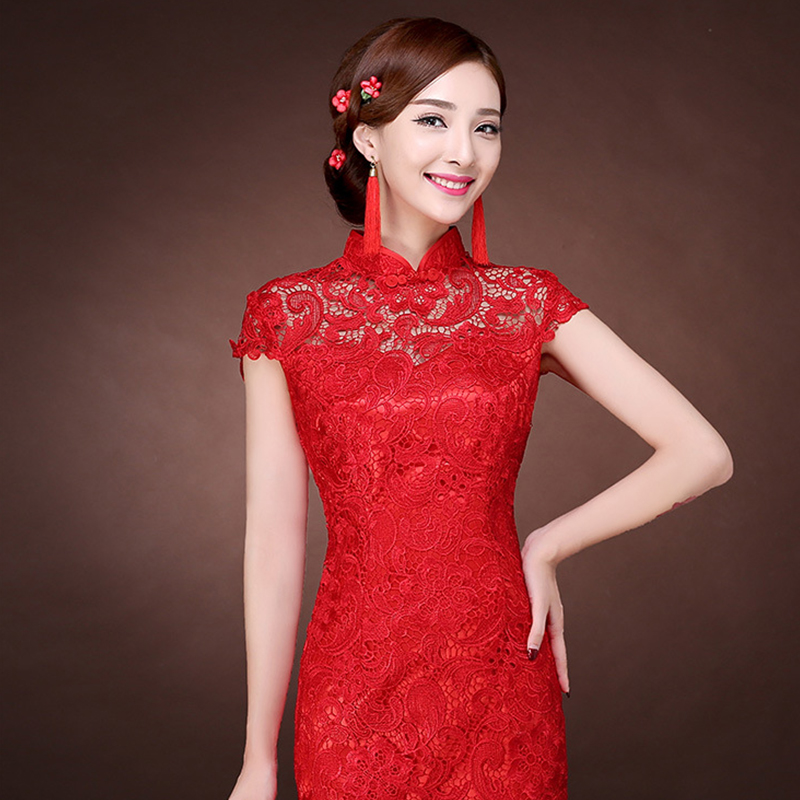 • 1秋韓式魚尾新娘敬酒修身紅色結(jié)婚旗袍禮晚禮服新款
