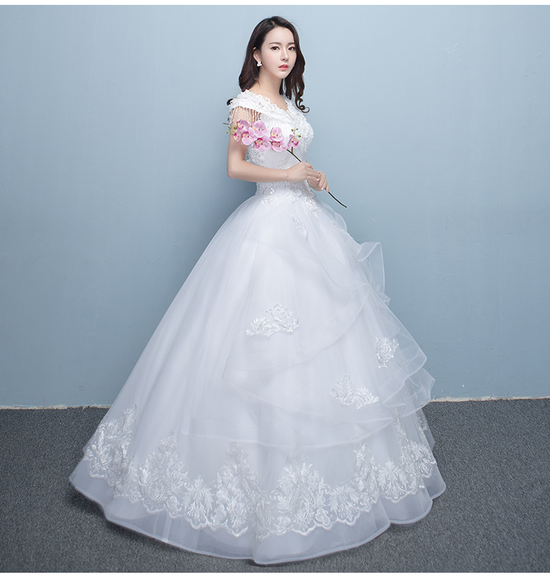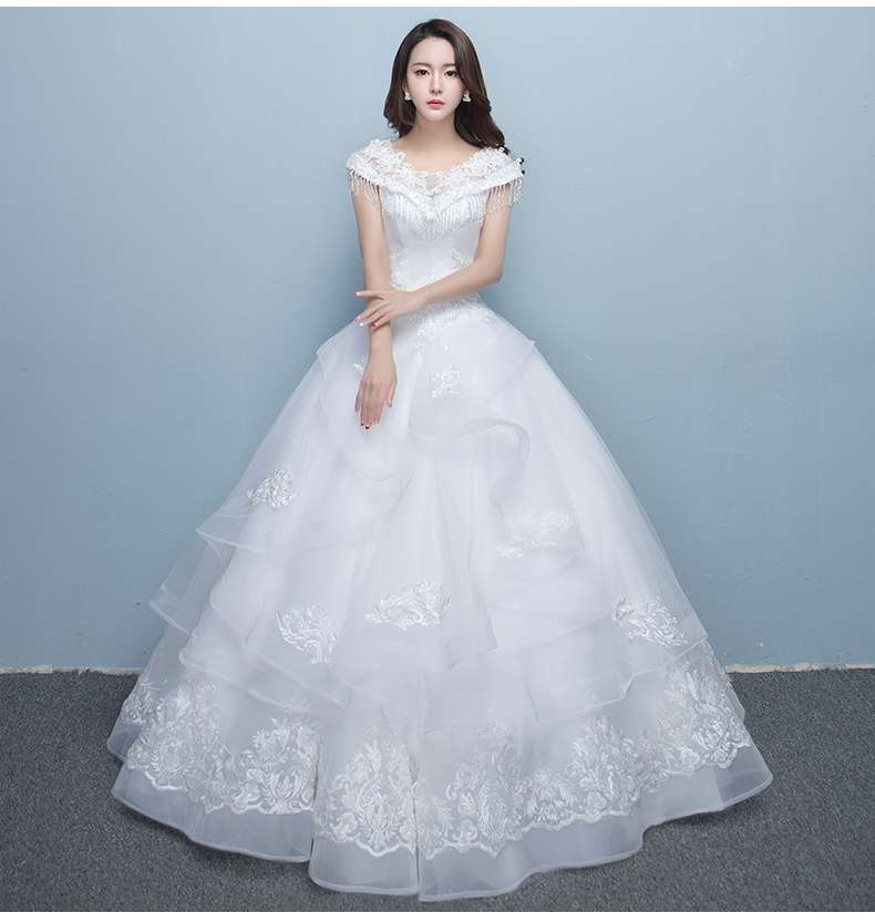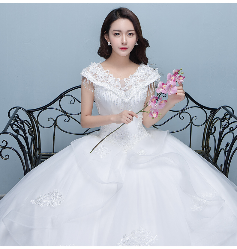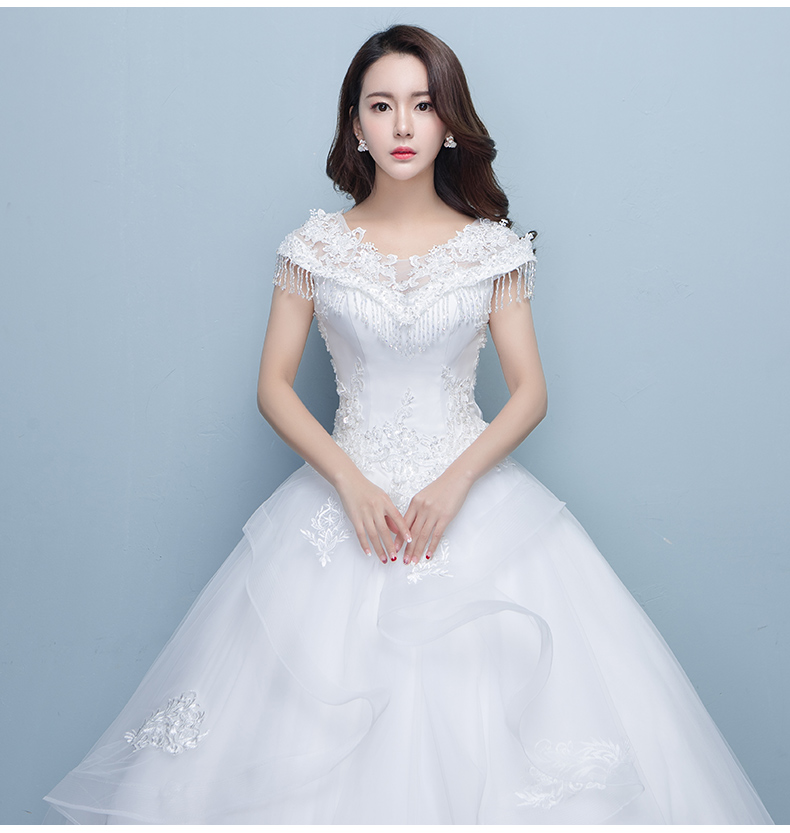 • 一字肩婚紗禮服2017新款韓式新娘結(jié)婚大碼顯瘦齊地婚紗公主蓬