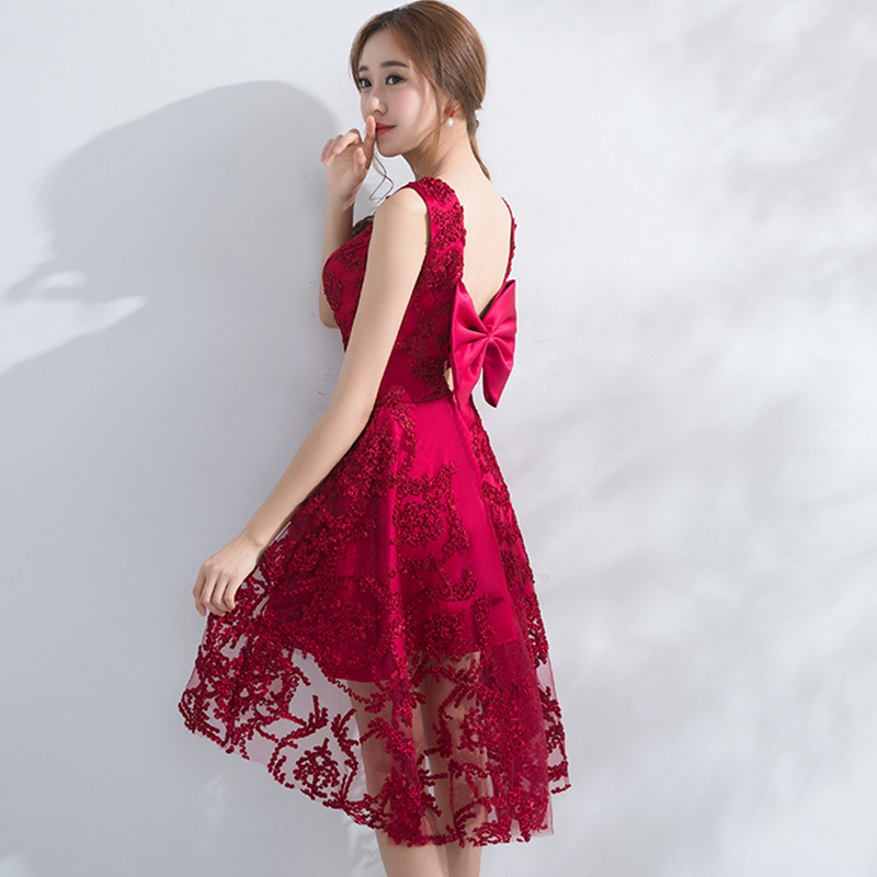 2017新款敬酒服新娘前短后長禮服時尚顯瘦宴會連衣裙219
