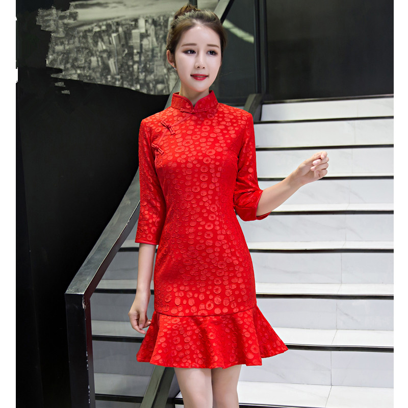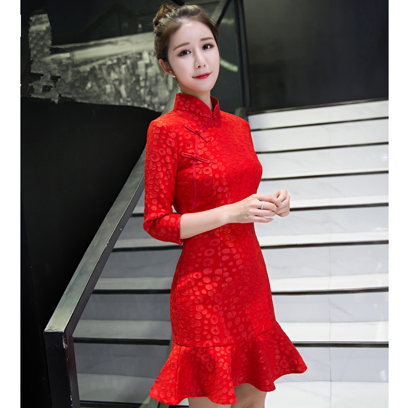 • 新娘敬酒服新款夏季紅色中袖結(jié)婚旗袍中式禮服日常連衣裙