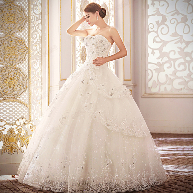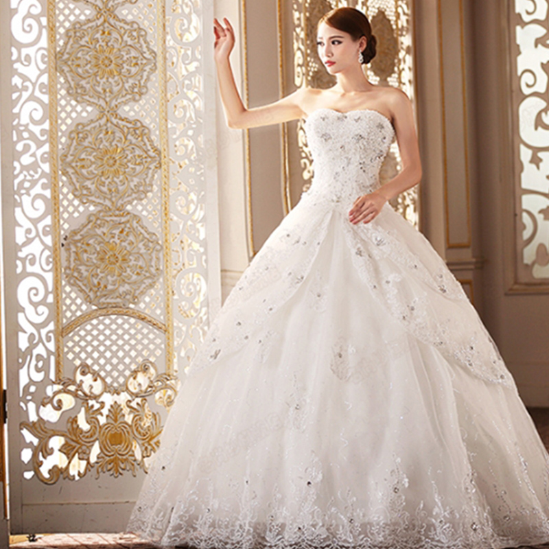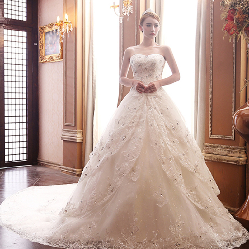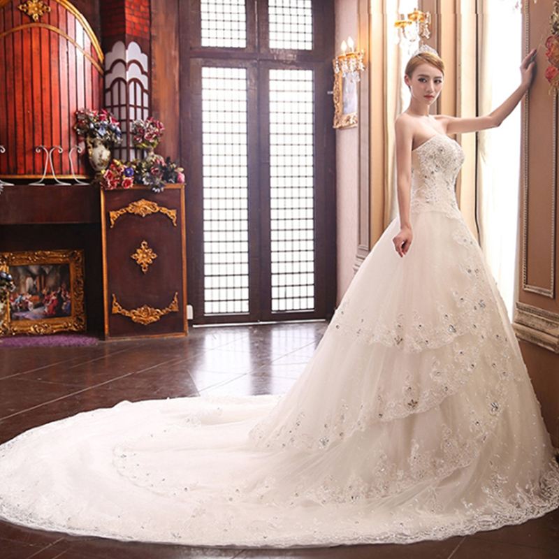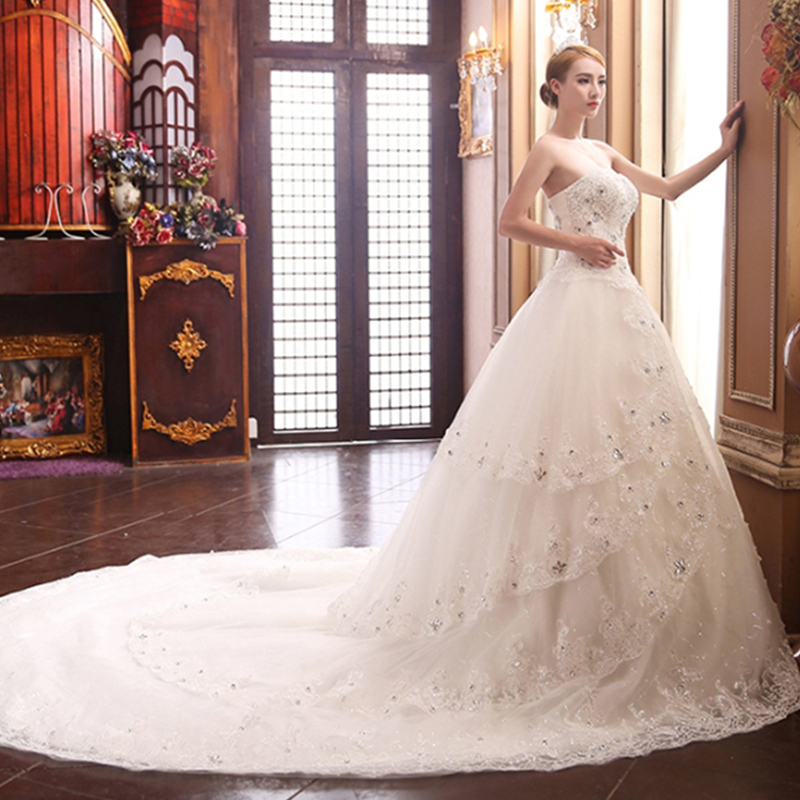 • 2017春夏季新款白色拖尾婚紗禮服韓版蕾絲新娘齊地2210