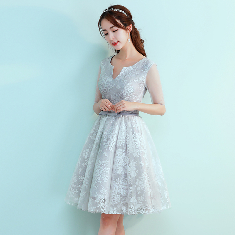 2017新款伴娘團(tuán)禮服短款姐妹裙韓版灰色姐妹團(tuán)畢業(yè)禮服246