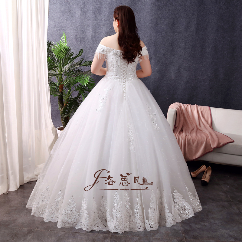 •  加肥大碼婚紗禮服胖mm顯瘦新娘歐式宮廷奢華復(fù)古一字肩長拖尾