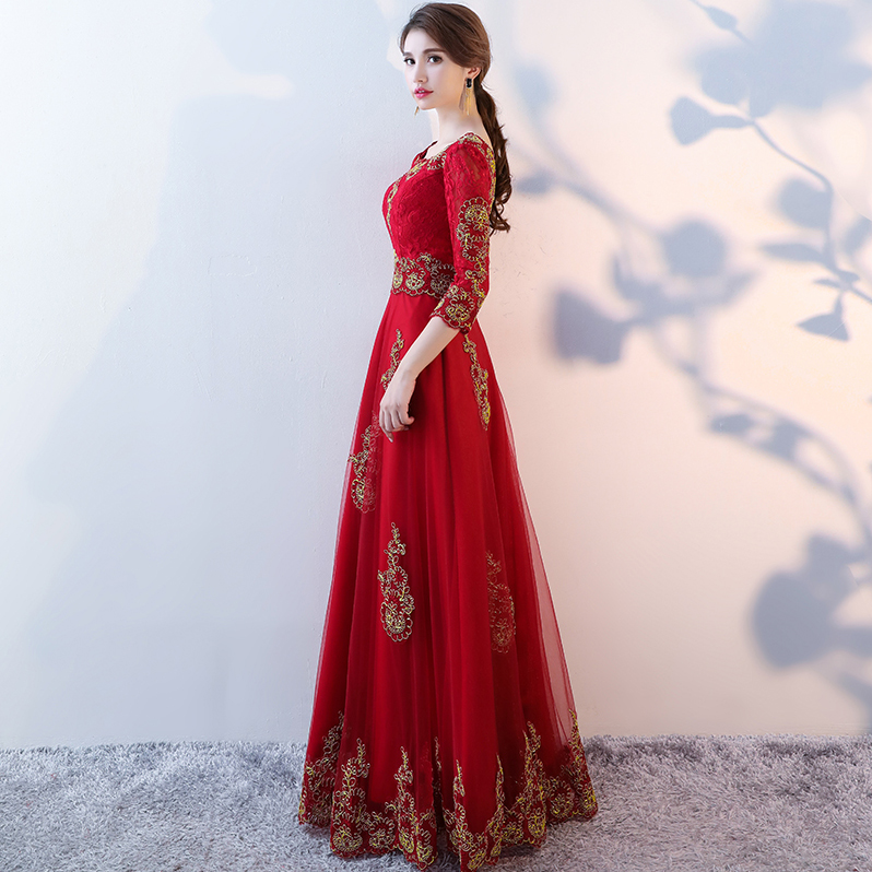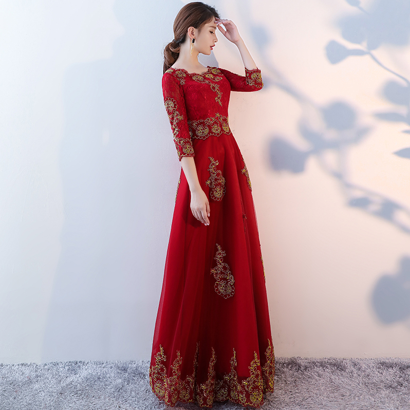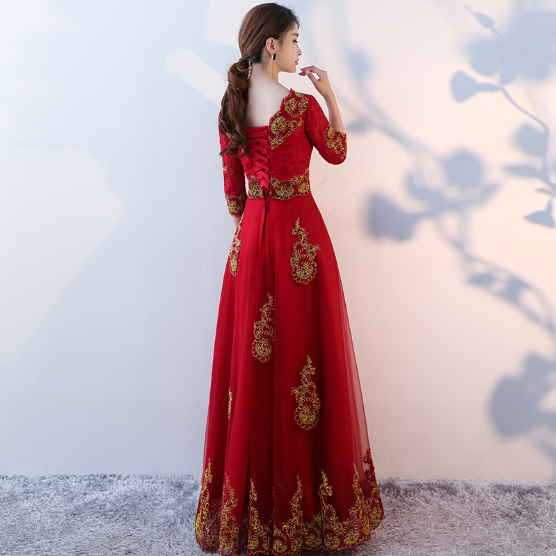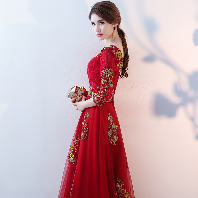 • 秋冬新品!2017新款秋一字肩修身顯瘦中袖結(jié)婚禮服長款