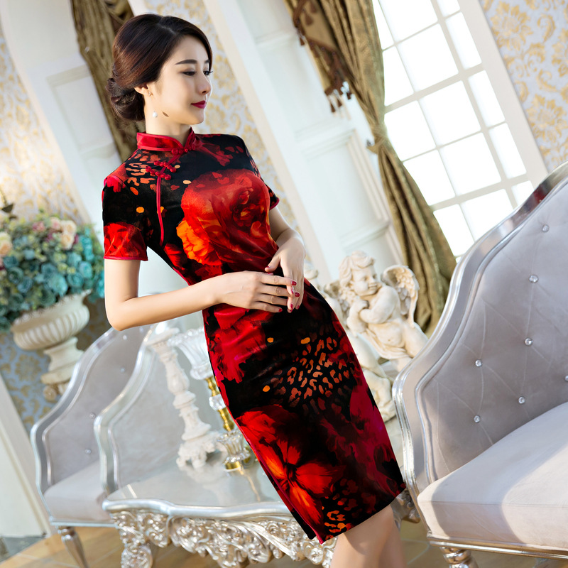 短旗袍女式修身復(fù)古旗袍 廠家直銷日常改良低開衩旗袍620