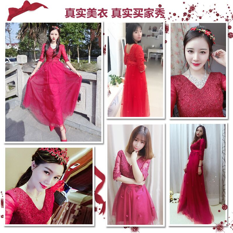 孕婦可穿!2017新款秋冬宴會大碼長款孕婦高腰結(jié)婚晚禮服