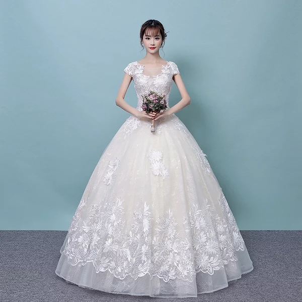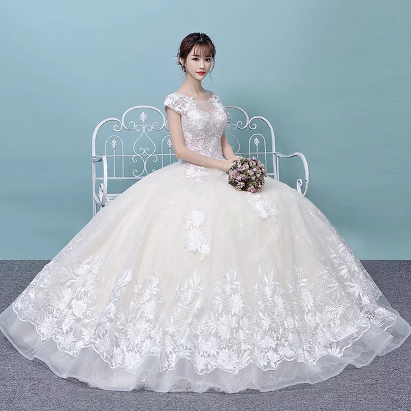 婚紗禮服2017新款韓式宮廷一字肩齊地公主顯瘦蕾絲刺繡婚紗禮