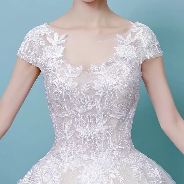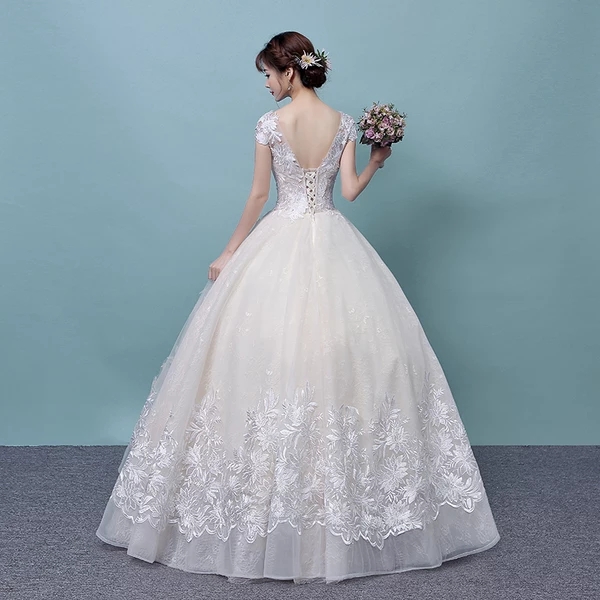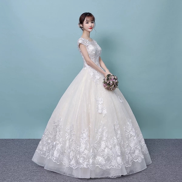 • 婚紗禮服2017新款韓式宮廷一字肩齊地公主顯瘦蕾絲刺繡婚紗禮