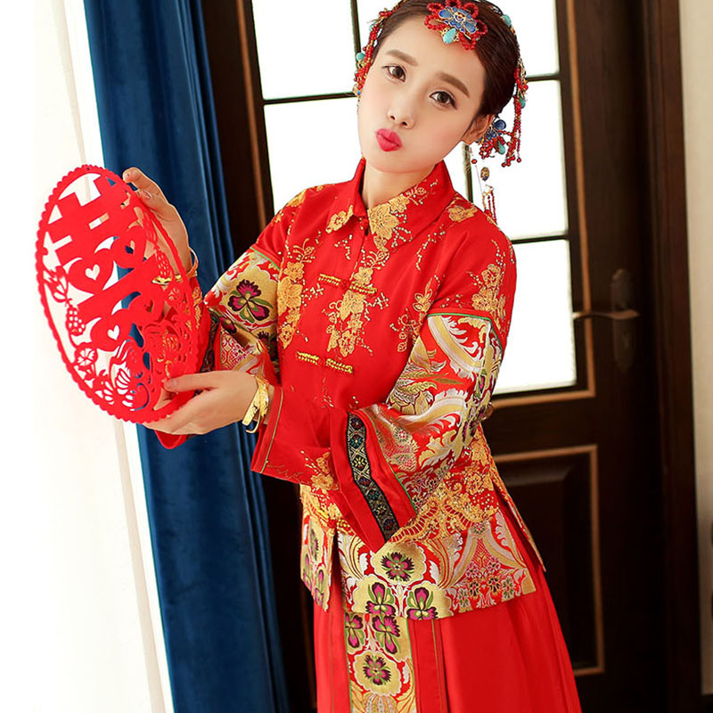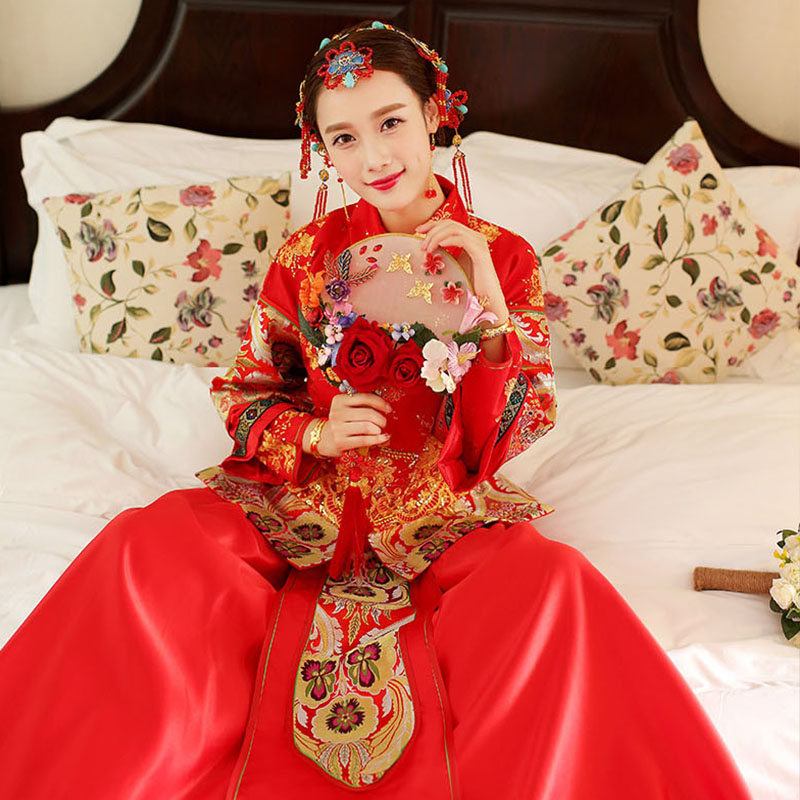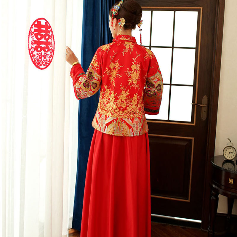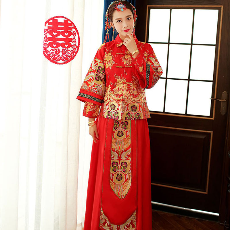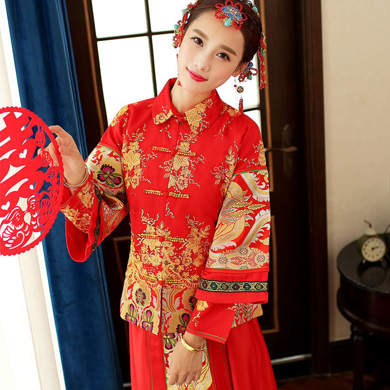 • 400秀禾服新娘禮服中式嫁衣敬酒服旗袍長袖長款龍鳳