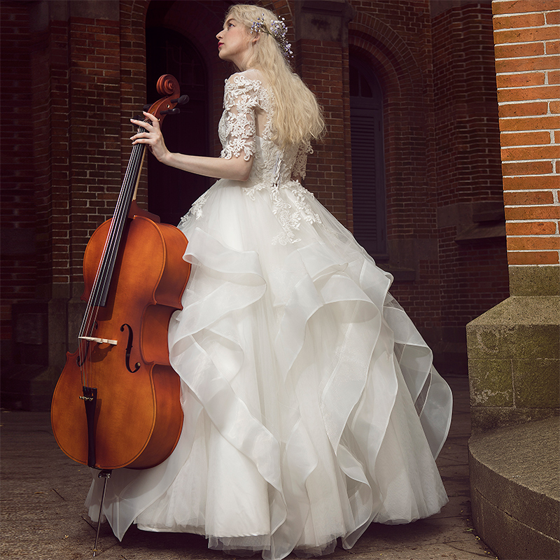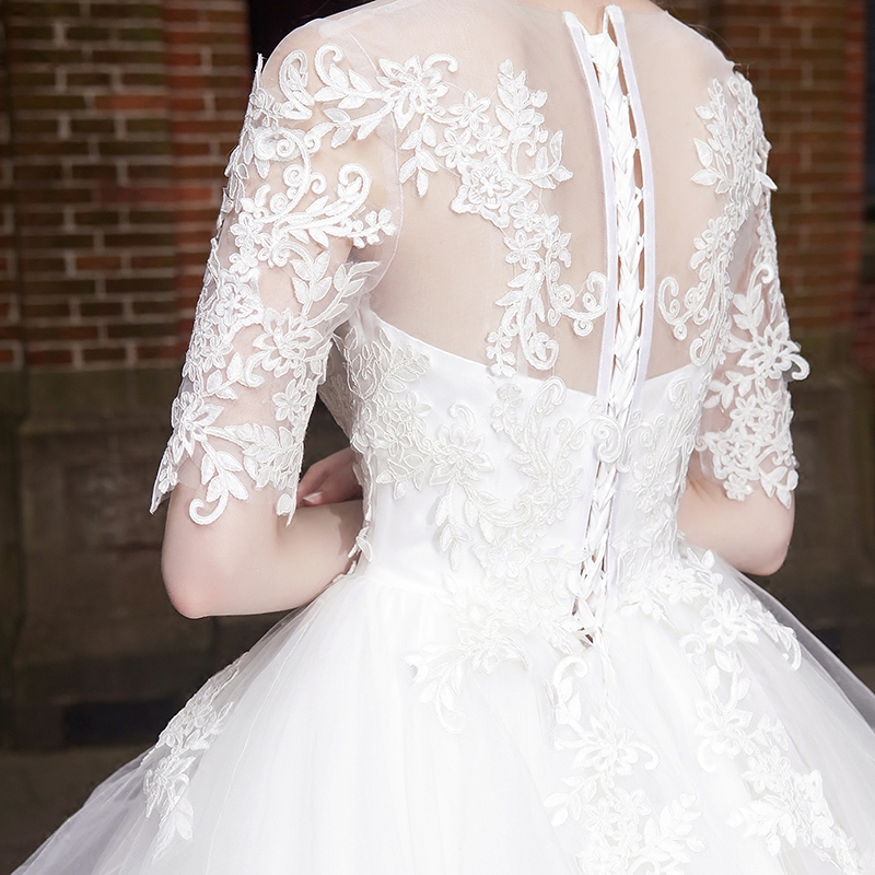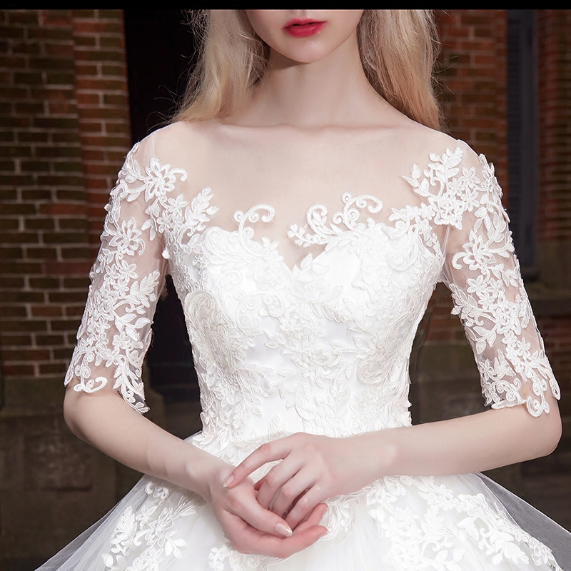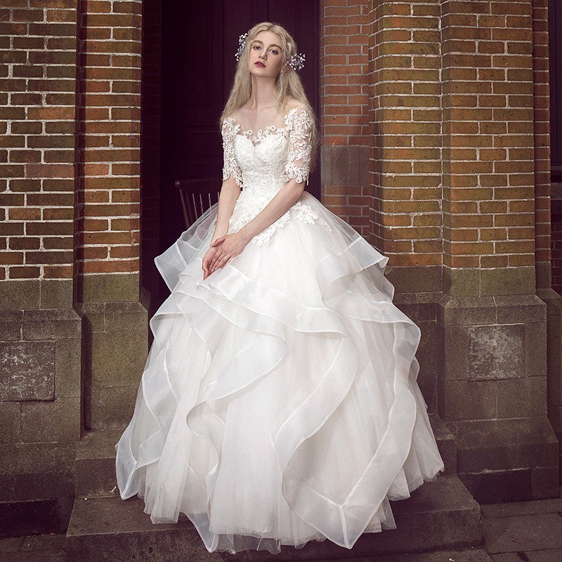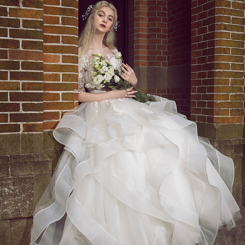 • 一字肩婚紗禮服2017新款秋時尚公主蓬蓬裙新娘顯瘦齊地拖尾夢
