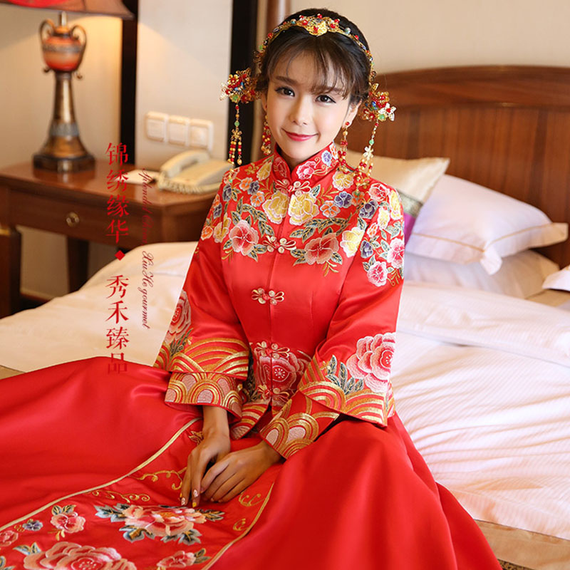 2017新款秀禾服新娘旗袍敬酒婚紗禮服結(jié)婚中式嫁衣498