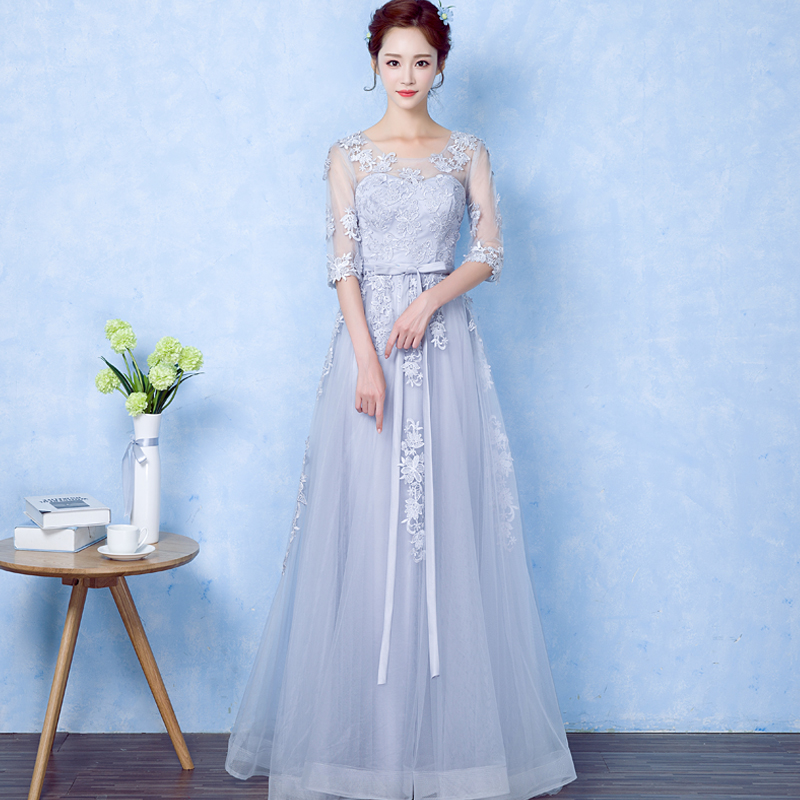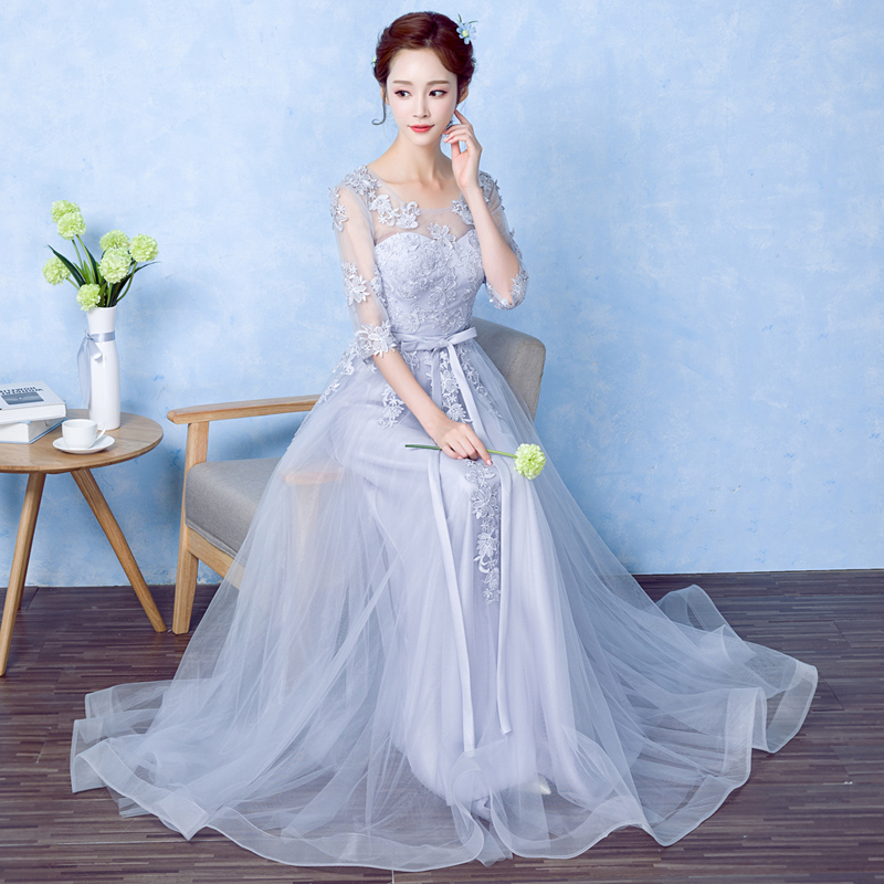 • 新款宴會晚禮服短款伴娘服顯瘦中袖長款韓版姐妹裙主持禮服女