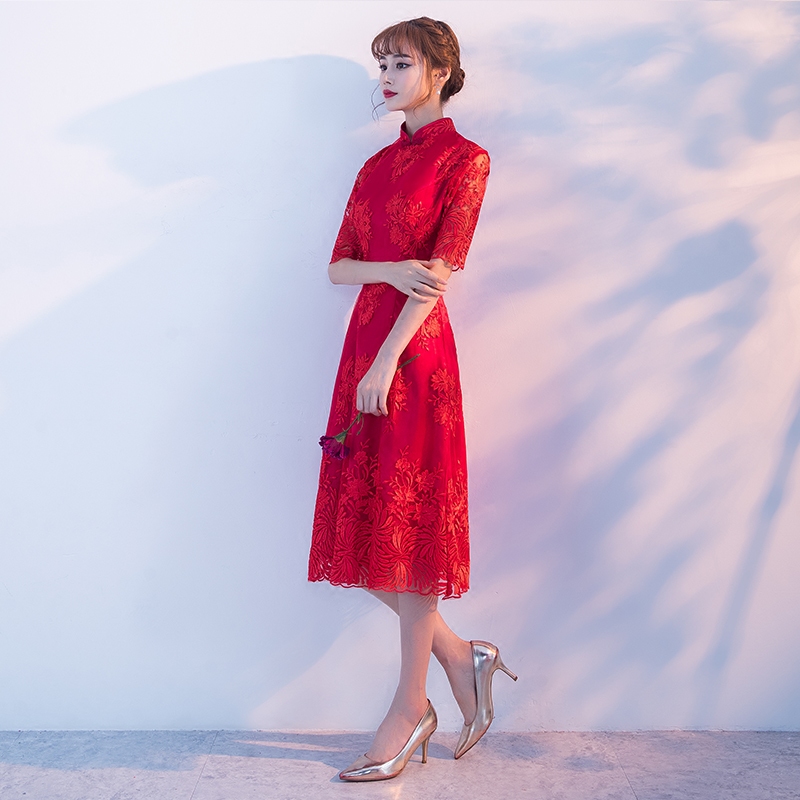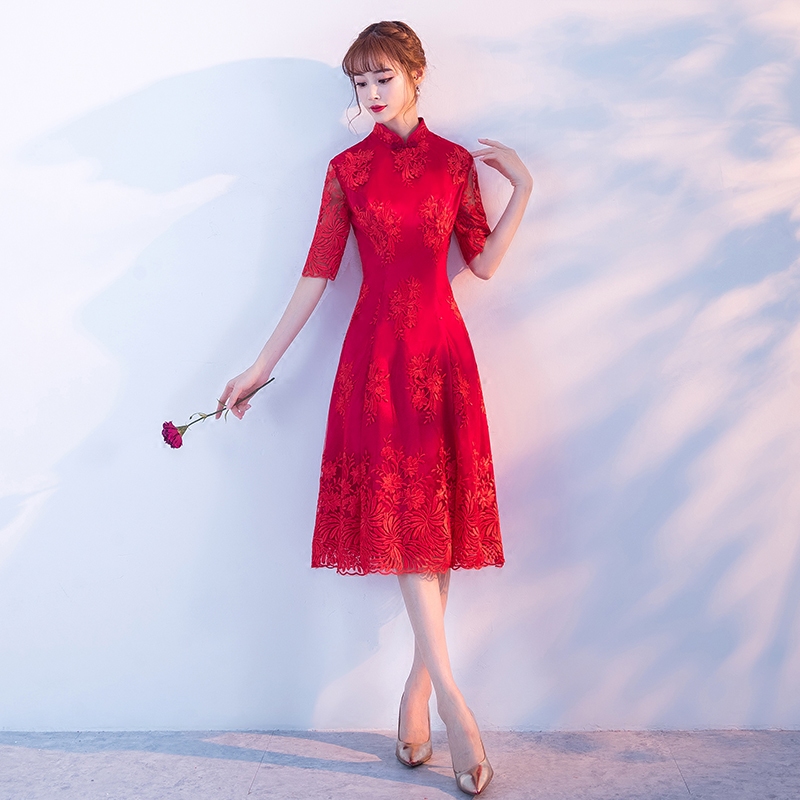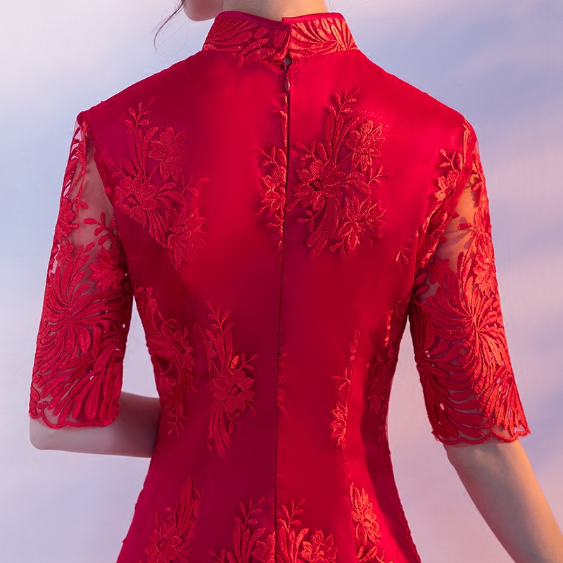 • 敬酒服新娘2017新款秋季紅色時(shí)尚結(jié)婚旗袍中國風(fēng)禮服女修身